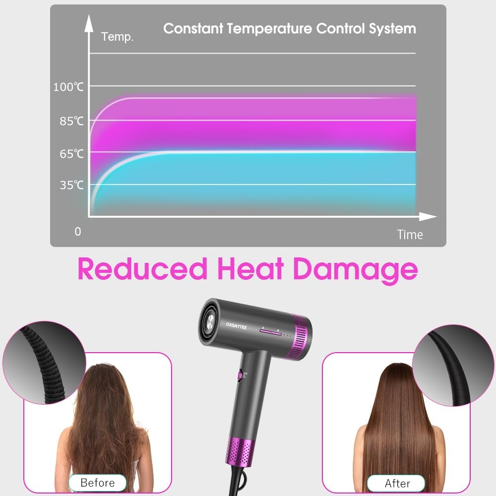 【مجفف شعر بالأيونات السلبية سريع وسهل التصفيف】يستخدم مجفف الشعر الخاص بنا تقنية الأيونات السالبة، مما يمنع الكهرباء الساكنة للشعر وتجعده بشكل فعال، ويحافظ على الرطوبة الطبيعية للشعر، ويقلل من تلف البروتين، ويجعل الشعر ناعمًا وناعمًا. 3 سرعات للدفع: منخفض/متوسط/مرتفع، 4 مستويات للحرارة: بارد/منخفض/متوسط/مرتفع، يسهل التحكم في درجة الحرارة وسرعة الهواء لمطابقة نوع شعرك بسهولة، مما يتيح لك تصفيفة الشعر المفضلة في المنزل.