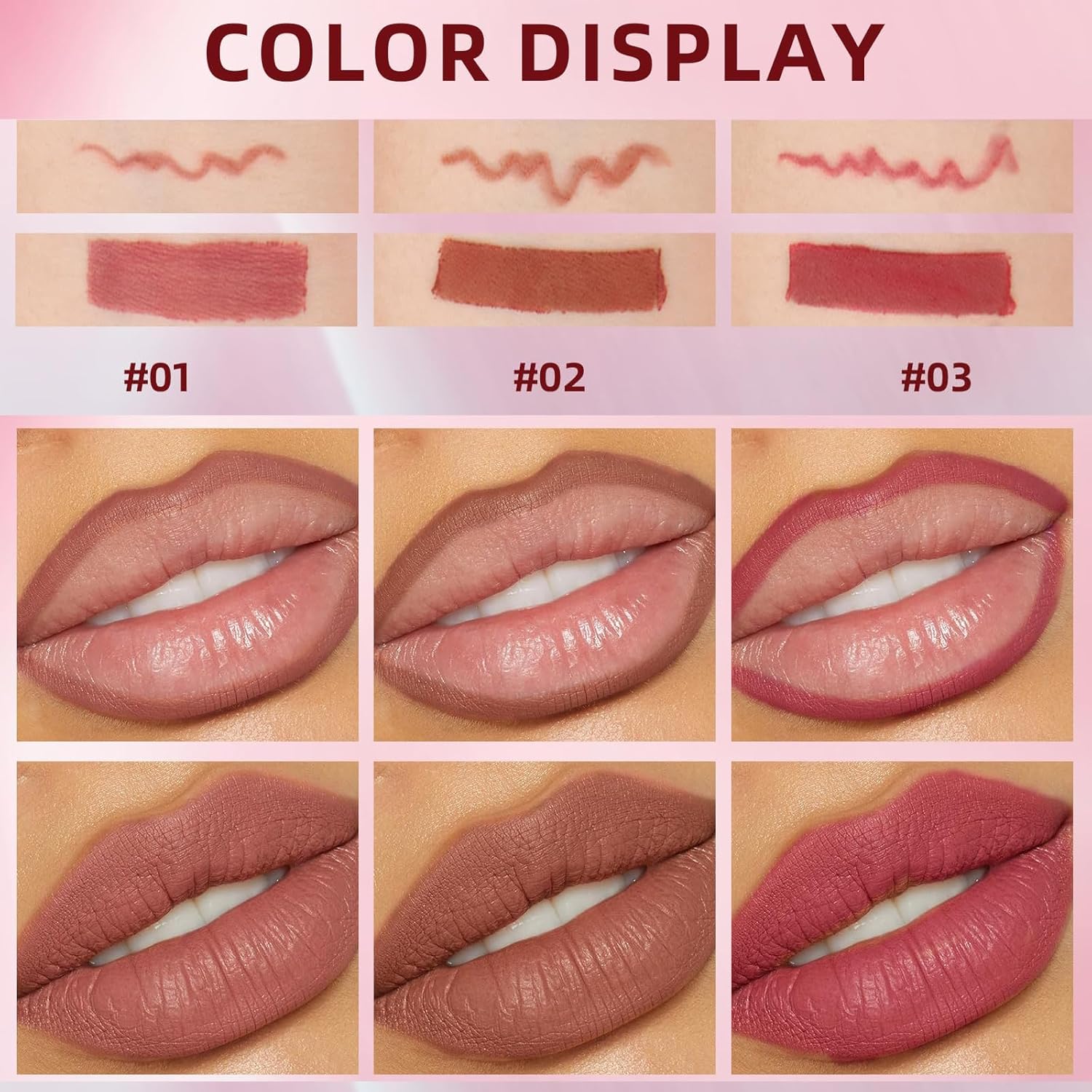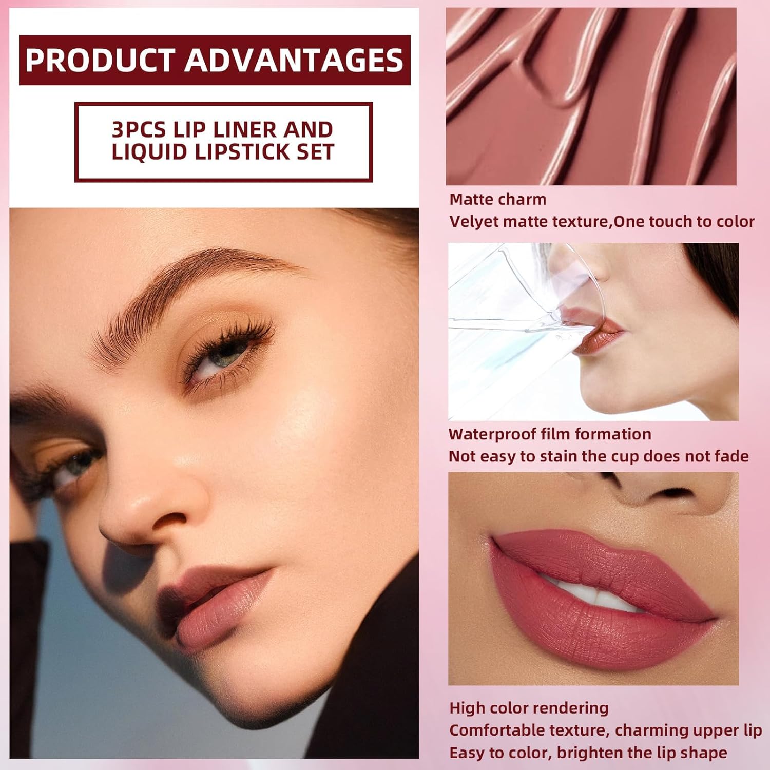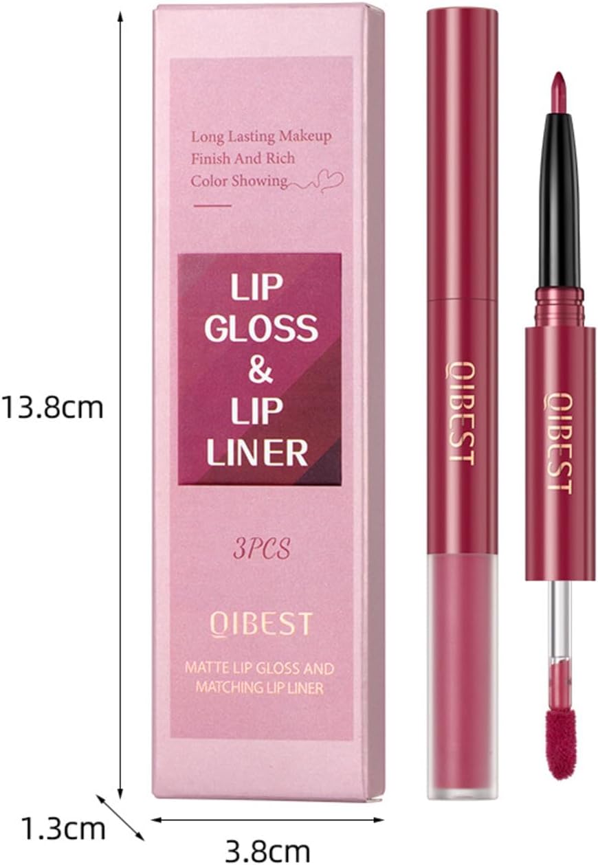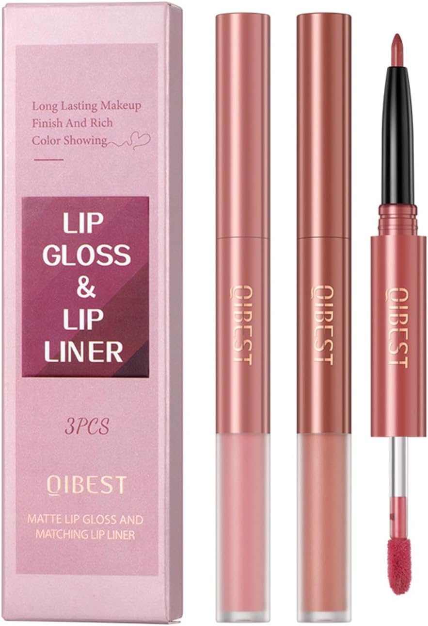 3 Pcs Matte Liquid Lipstick and Lip Liner Set, Long-Lasting Waterproof Nude Shades