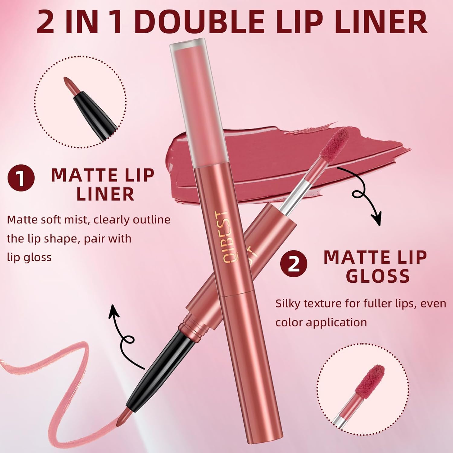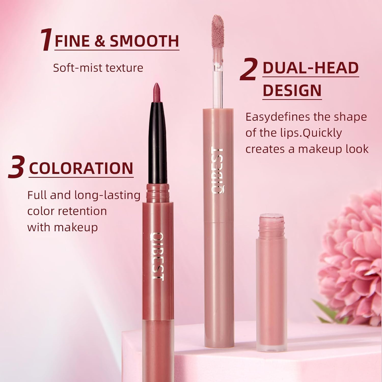 [مثالي من الساتان غير اللامع] أحمر الشفاه السائل يضع لونًا مخمليًا وغير شفاف بينما تنحت البطانات المطابقة انحناءات الأزياء الراقية التي ترفض الريش.