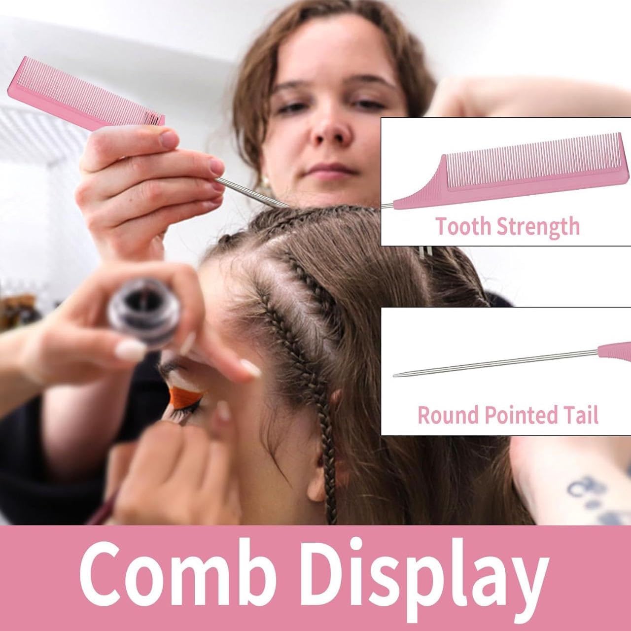 مشط ذيل الفئران – مصنوع من البلاستيك المتين مع مقبض من الستانلس ستيل، يفصل ذيل الفئران المدبب بسهولة خط الشعر دون خدش فروة الرأس. خفيف الوزن ومرن، مثالي لتصفيف الشعر في المنزل أو للاستخدام الاحترافي في صالونات التجميل.