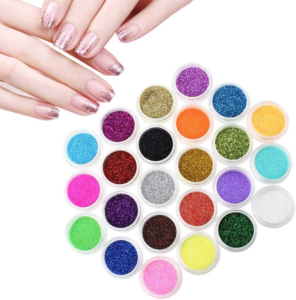 مجموعة جليتر اظافر فائقة النعومة من 24 قطعة – جليتر تجميل متعدد الاستخدامات للوجه والجسم والشعر وفن الاظافر للمكياج والحرف اليدوية ودفتر القصاصات، لمعان فائق النعومة للجمال الابداعي والمشاريع التي
