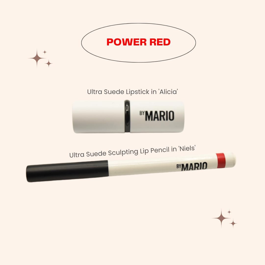 جريئة ومحددة: احصلي على شفاه جريئة ومحددة مع مجموعة رفع الشفاه ميك اب من ماريو ماريو باللون الأحمر القوة. يتضمن أحمر الشفاه الترا سويد في اليسيا، وهو لون أحمر مذهل مع لمسة نهائية جميلة غير لامعة.