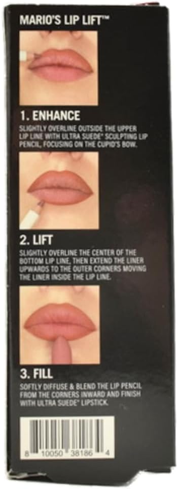 ثنائي صغير لابتكار تقنية رفع الشفاه الفيروسية من ماريو بما في ذلك أحمر شفاه الترا سويد وقلم تحديد الشفاه الترا سويد للحصول على شفاه ممتلئة ومرفوعة مع لمسة نهائية ناعمة غير لامعة.