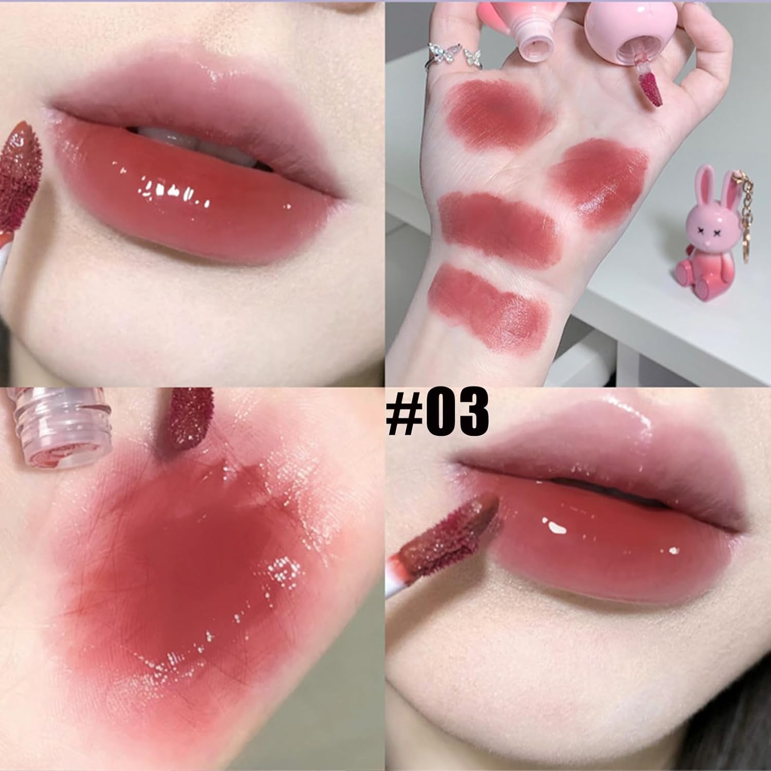 تصميم أرنب فريد: مجموعة ملمع شفاه رائعة على شكل سلسلة مفاتيح تضيف سحرًا مرحًا إلى روتين مكياجك وتبرز جمالية الأرنب اللطيفة