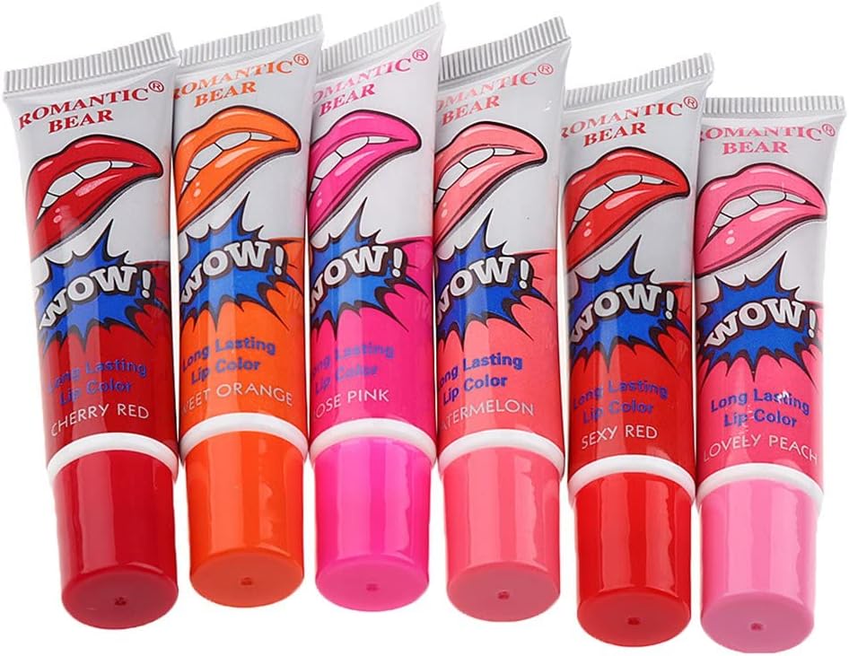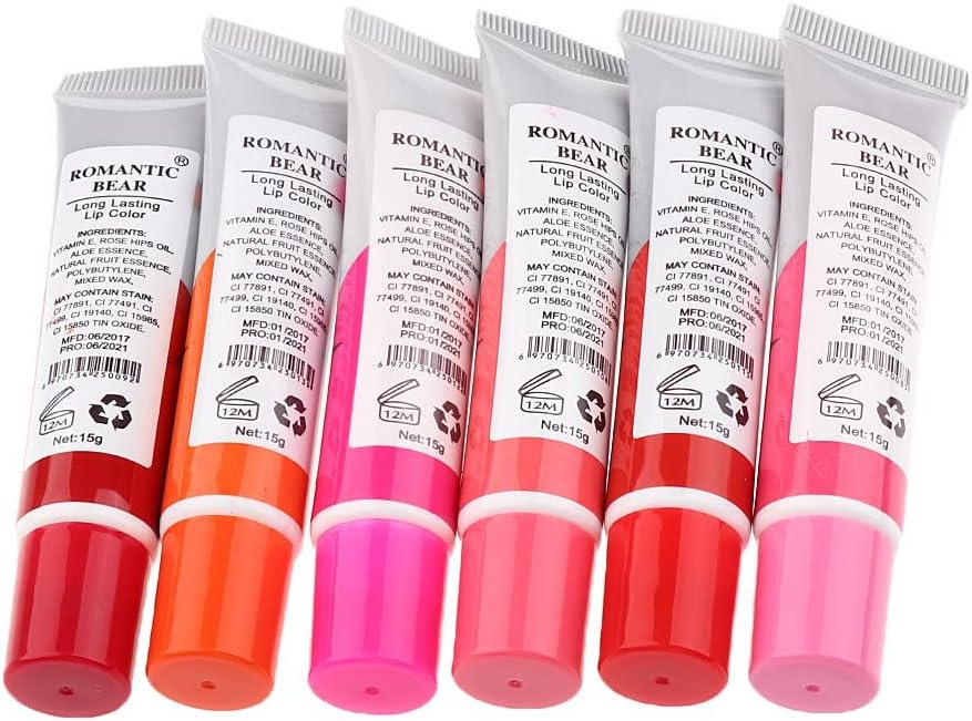 6 قطع من الأنابيب اللامعة الملونة لتجارب مختلفة. (أحمر كرزي، أحمر مثير (أحمر كارمين)، برتقالي حلو، وردي وردي، أحمر بطيخي، وخوخي جميل)