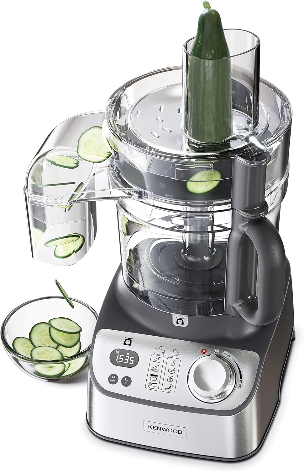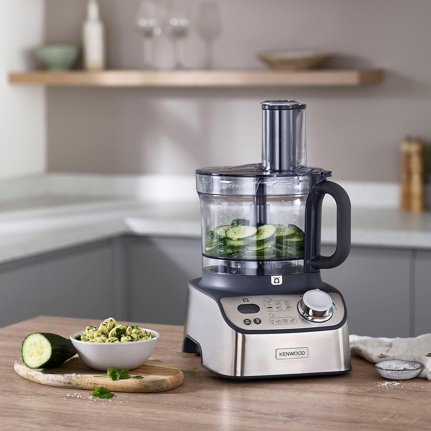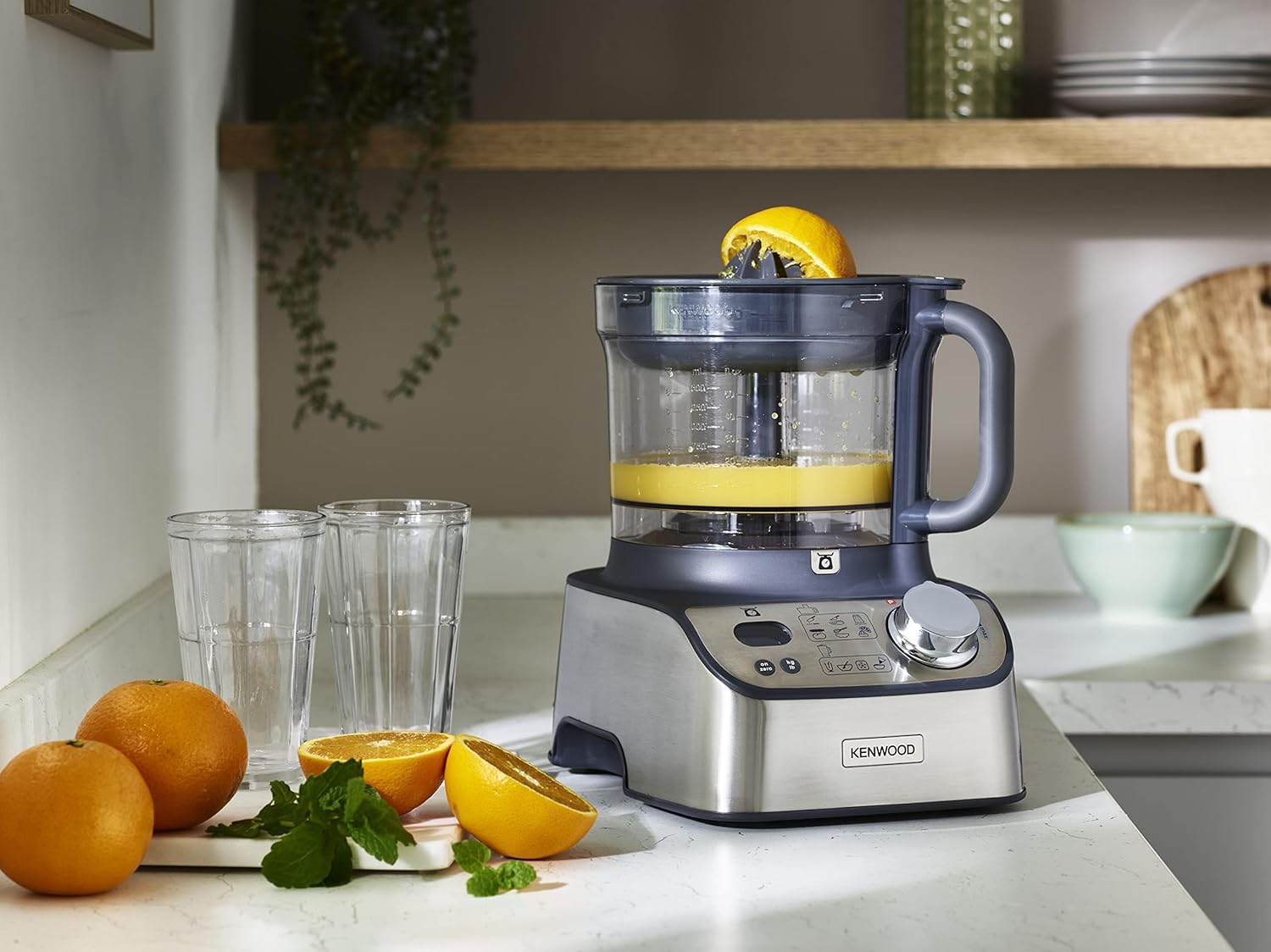 محضر طعام بقدرة 1000 واط من كينوود مع خلاط زجاج ومطحنة وخفاقة معدنية مزدوجة وعصارة وماكينة صنع عجين وعصارة حمضيات وصانع سلطة سريع وميزان مطبخ، Fdm71.980Ss، فضي