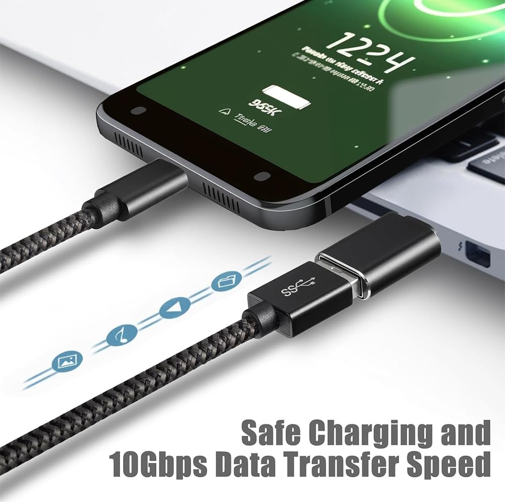 【مزامنة البيانات والشحن】: من خلال دعم USB 3.0 وOTG، يسمح هذا المحول للهواتف الذكية والتابلت المزودة بمنفذ USB-C بالقراءة من الوسائط القابلة للإزالة كمضيف، مما يوفر سرعات نقل بيانات تصل إلى 5 جيجابايت في الثانية بين الأجهزة المتصلة. كما أنه يدعم ما يصل إلى 2.4 امبير من مخرج الطاقة لشحن أجهزتك.