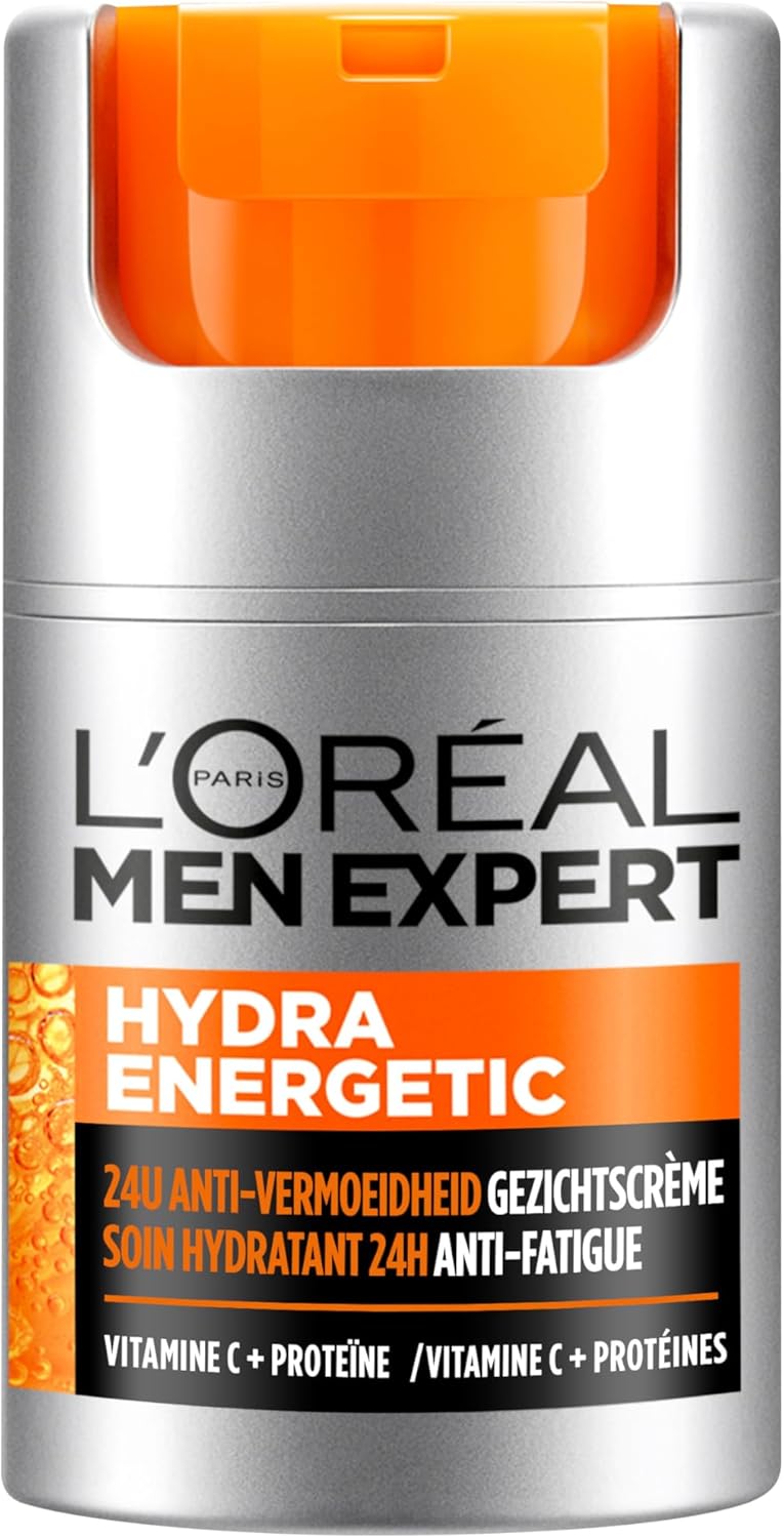 لوشن ترطيب يومي مضاد للإجهاد من لوريال باريس مين اكسبرت هيدرا انيرجيتك. يحارب هذا المرطب المكثف علامات التعب الخمس لإبقائك مستعداً للعمل في أي وقت. كل الإجهاد والحياة والليالي المتأخرة يظهرون على وجهك، ولكن الآن يمكنك عكس علامات التعب مع هذا البلسم المرطب الذي يدوم 24 ساعة. تعمل التركيبة الغنية بفيتامين C والمغنيسيوم على ترطيب بشرتك وحمايتها من العوامل الخارجية للحفاظ عليها ولتبدو شابة ونقية. بعد استخدام هذا المنتج يمكنك توقع بشرة أقل صلابةً وأكثر إشراقاً. خالٍ من المواد المسببة للحساسية والبارابين والمواد الكيميائية القاسية الأخرى.