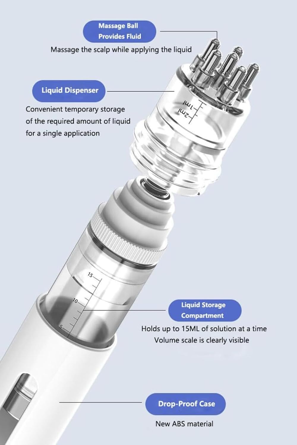 مشط توزيع فروة الرأس، مشط تدليك فروة الرأس، فرشاة توزيع كروية دوارة، سيروم تدليك فروة الرأس، أداة وضع سيروم الشعر مناسبة لمختلف السوائل، لعلاج نمو الشعر