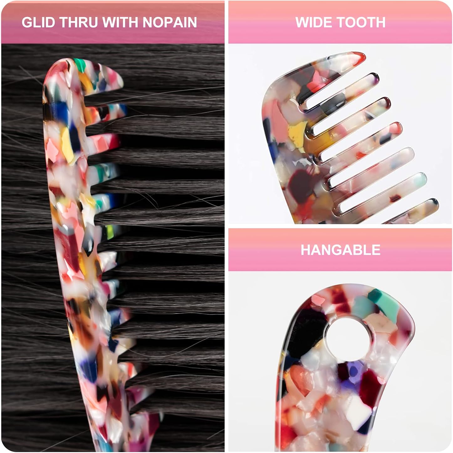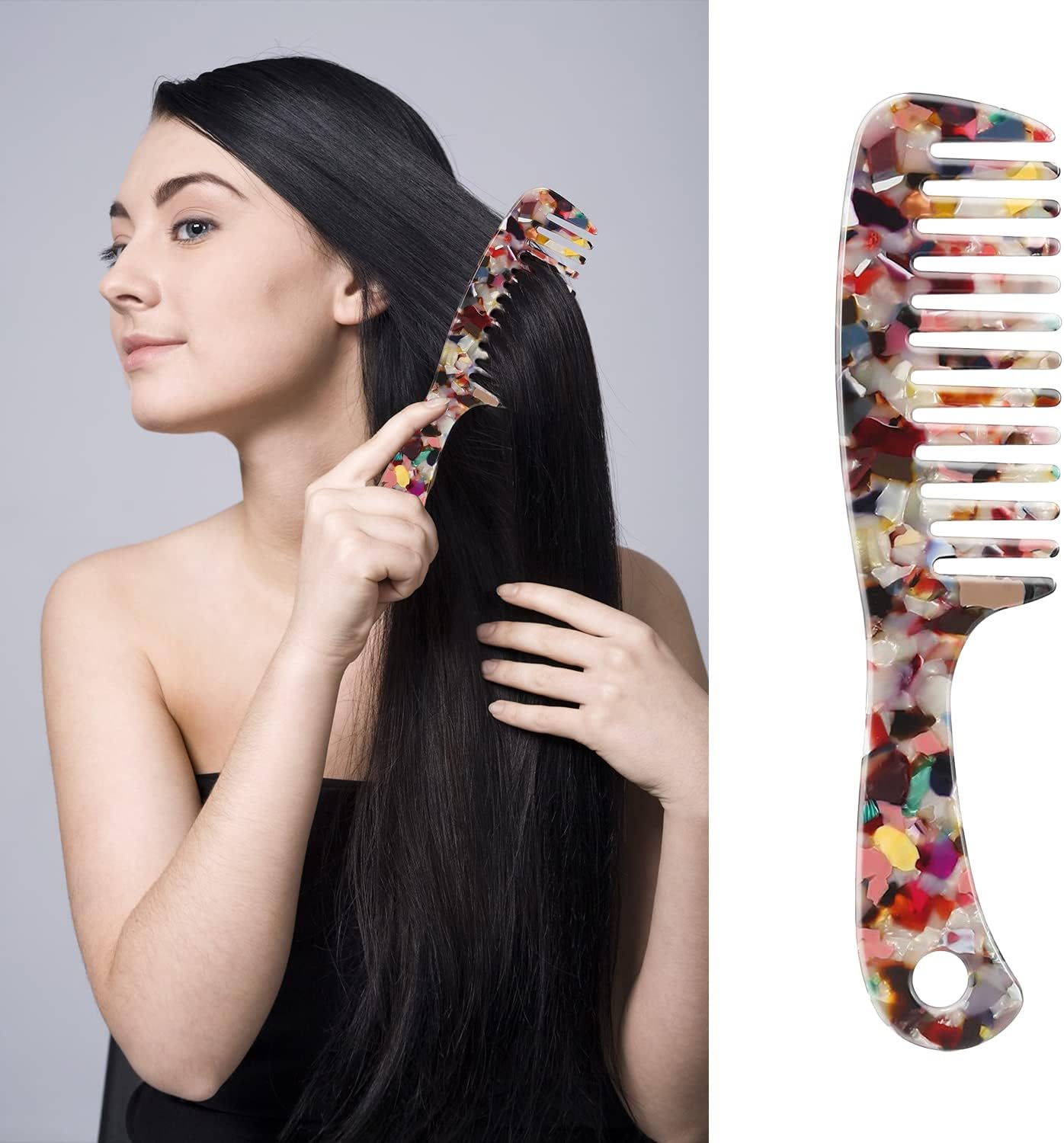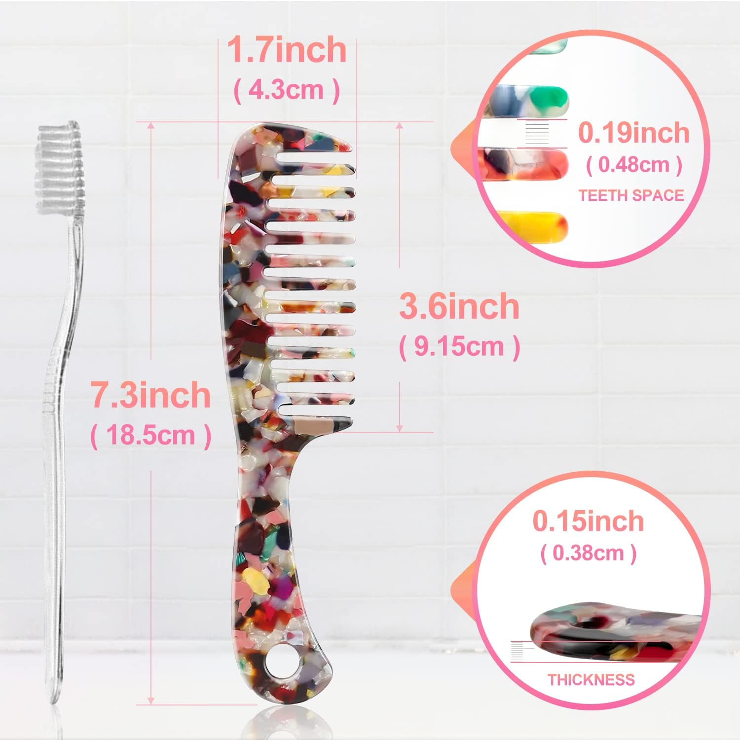 مادة قوية: هذا المشط ذو الأسنان العريضة مصنوع من أسيتات السليلوز، قوي ومتين، لون جميل ورائع. المقاس: الطول 18.5 سم والعرض 4.3 سم.