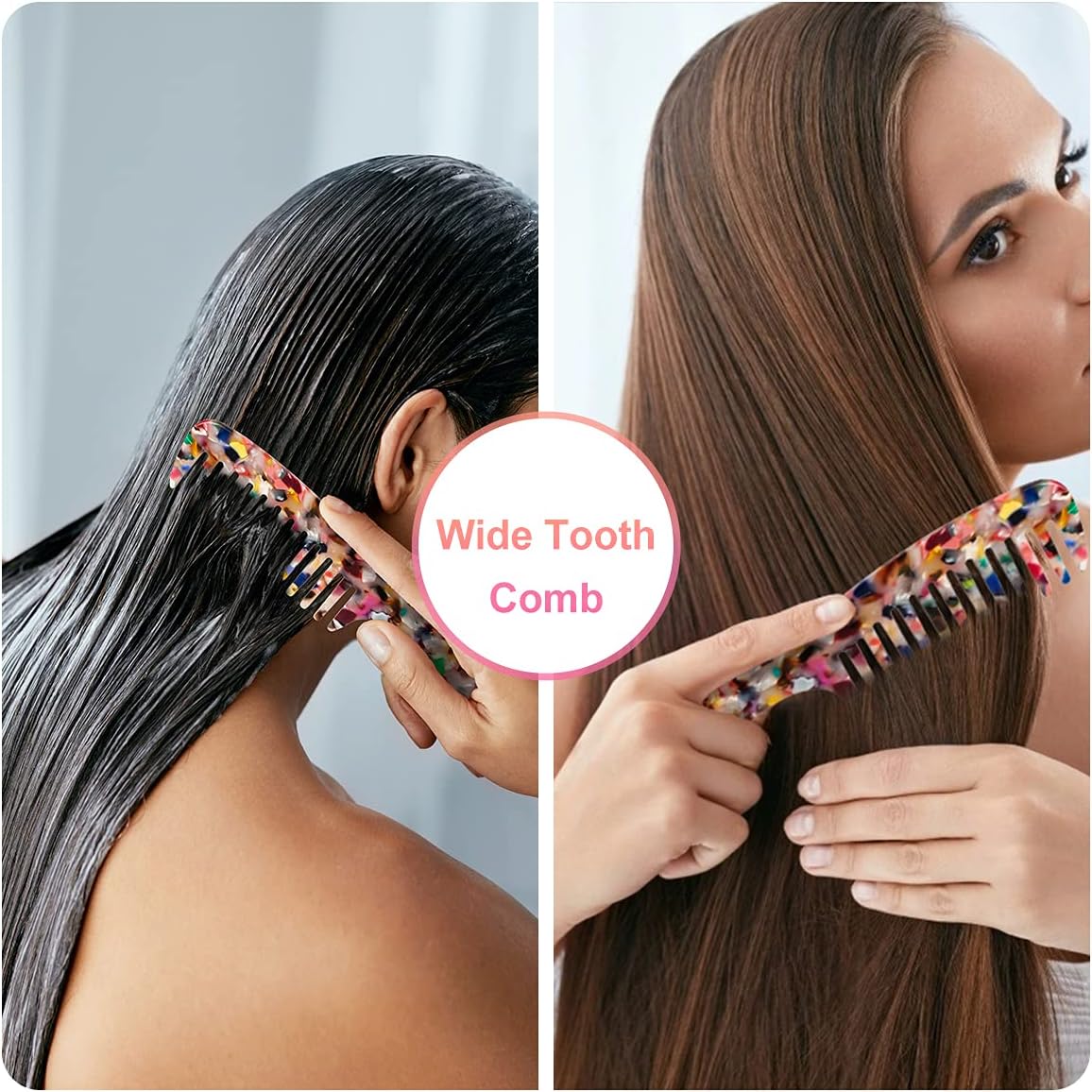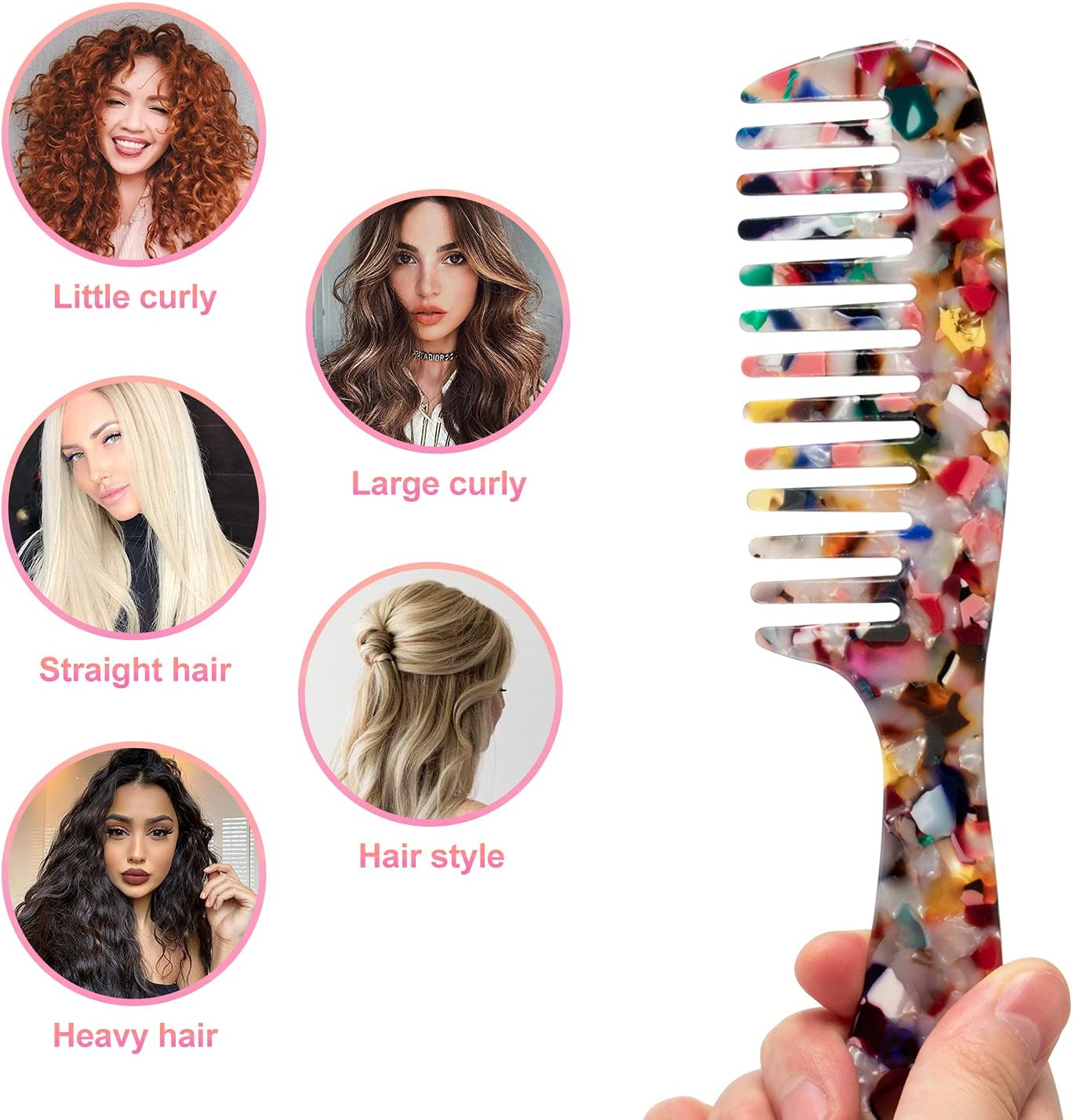مشط شعر كبير بأسنان عريضة، [صدفة السلحفاة] مشط أسنان مستديرة من أسيتات السليلوز للشعر المستقيم / المجعد، للشعر القصير/الطويل للنساء والرجال والأطفال، سهل الفك الرطب أو الجاف، مضاد للكهرباء الساكنة (متعدد الألوان)