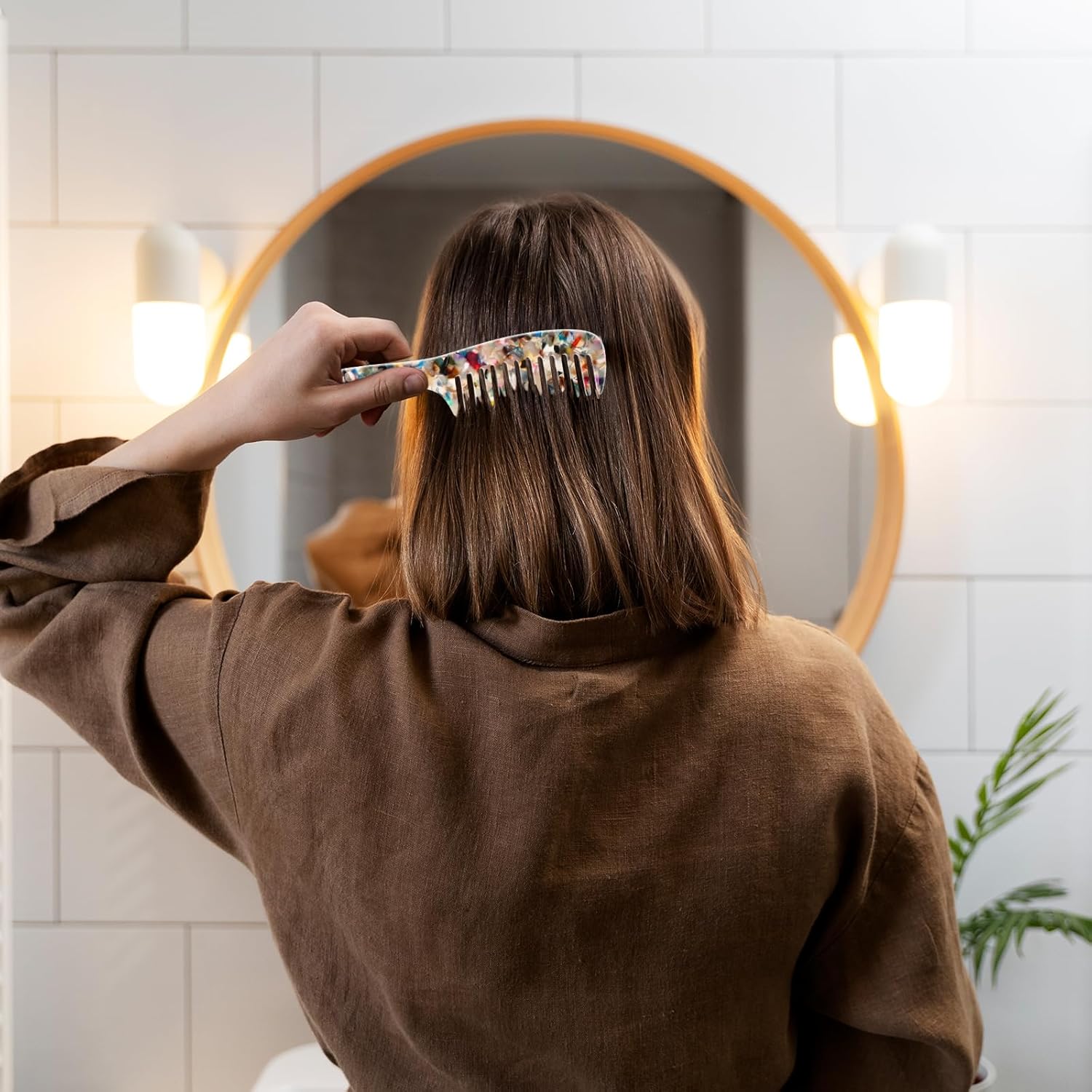 تأثيرات الاستخدام: يمكن أن ينزلق المشط ذو الأسنان العريضة بسلاسة على فروة رأسك ويحمي شعرك من التعرض للأذى أثناء فك التشابك والتصفيف، كما أن تمشيط شعرك بانتظام وبلطف باستخدام هذا المشط يمكن أن يقلل من تساقط الشعر.