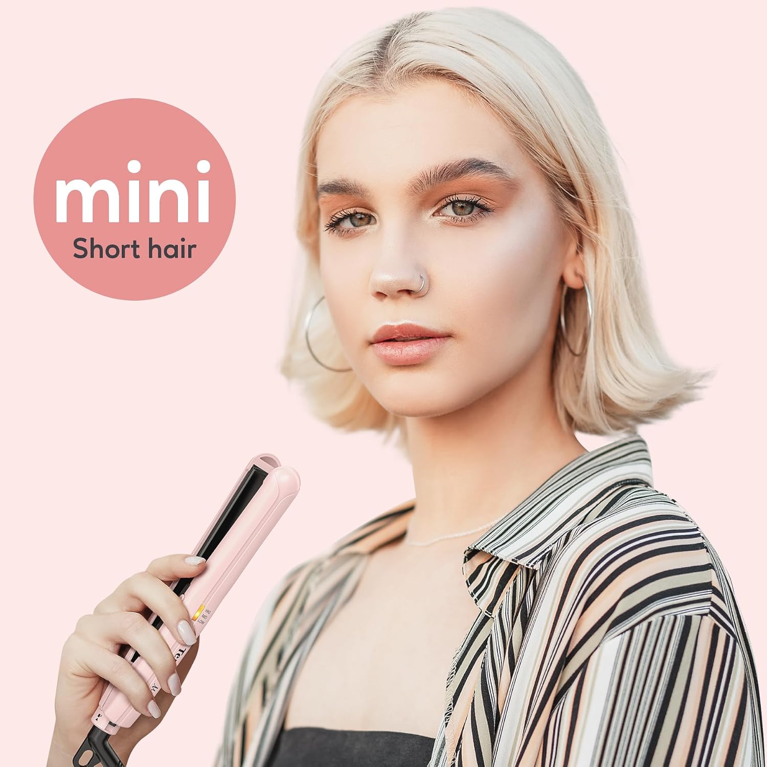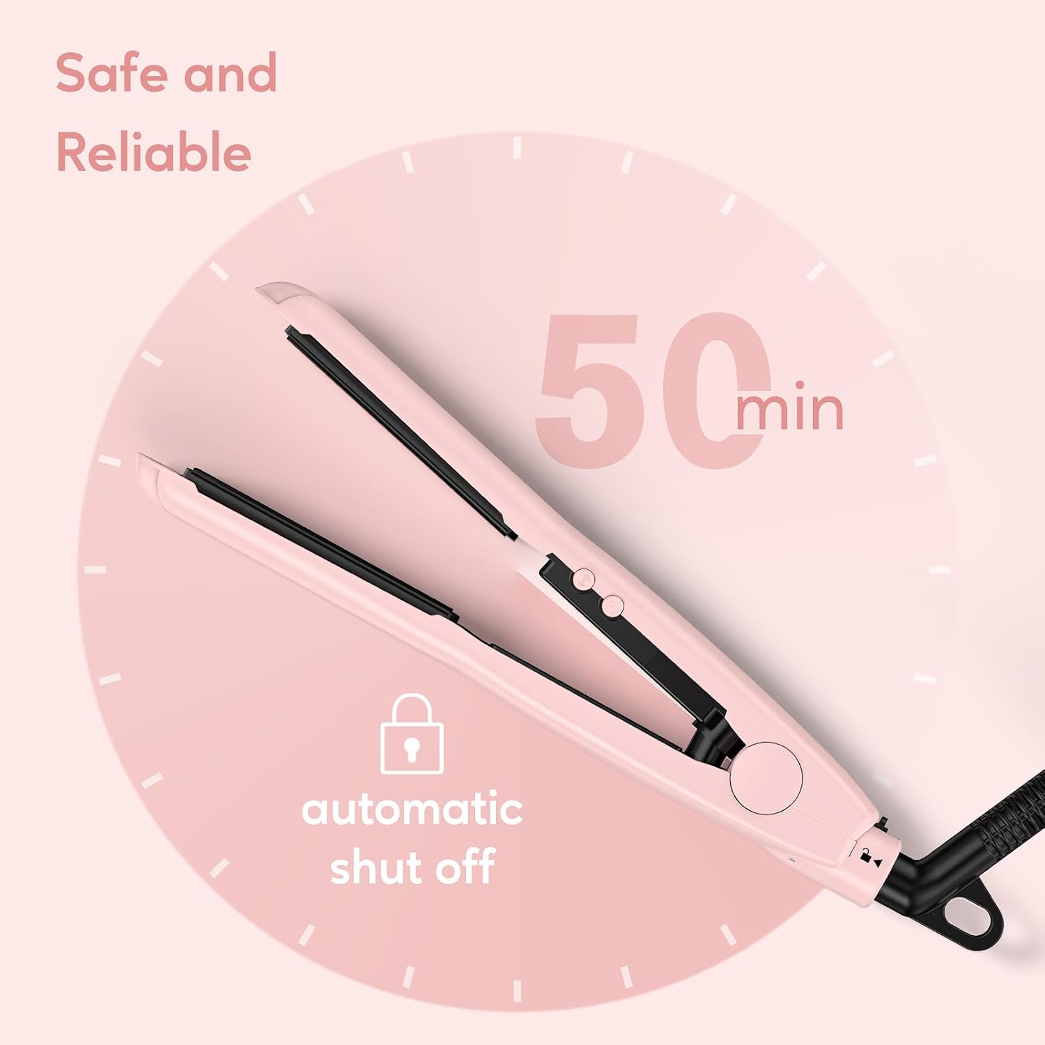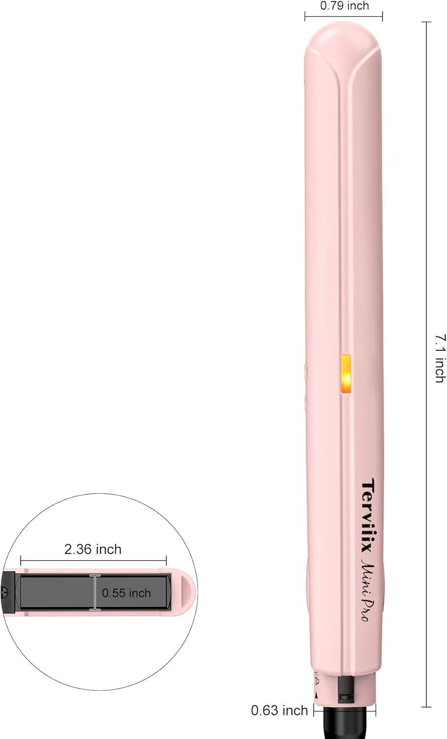 مكواة فرد الشعر الصغيرة من تيرفيكس بدرجة حرارة قابلة للتعديل، مكواة مسطحة صغيرة بحجم مناسب للسفر، مكواة مسطحة صغيرة للشعر القصير / تجعيد الشعر، مكواة تجعيد الشعر الصغيرة المحمولة من السيراميك، جهد مزدوج، إيقاف تلقائي، زهري، 1/2 انش