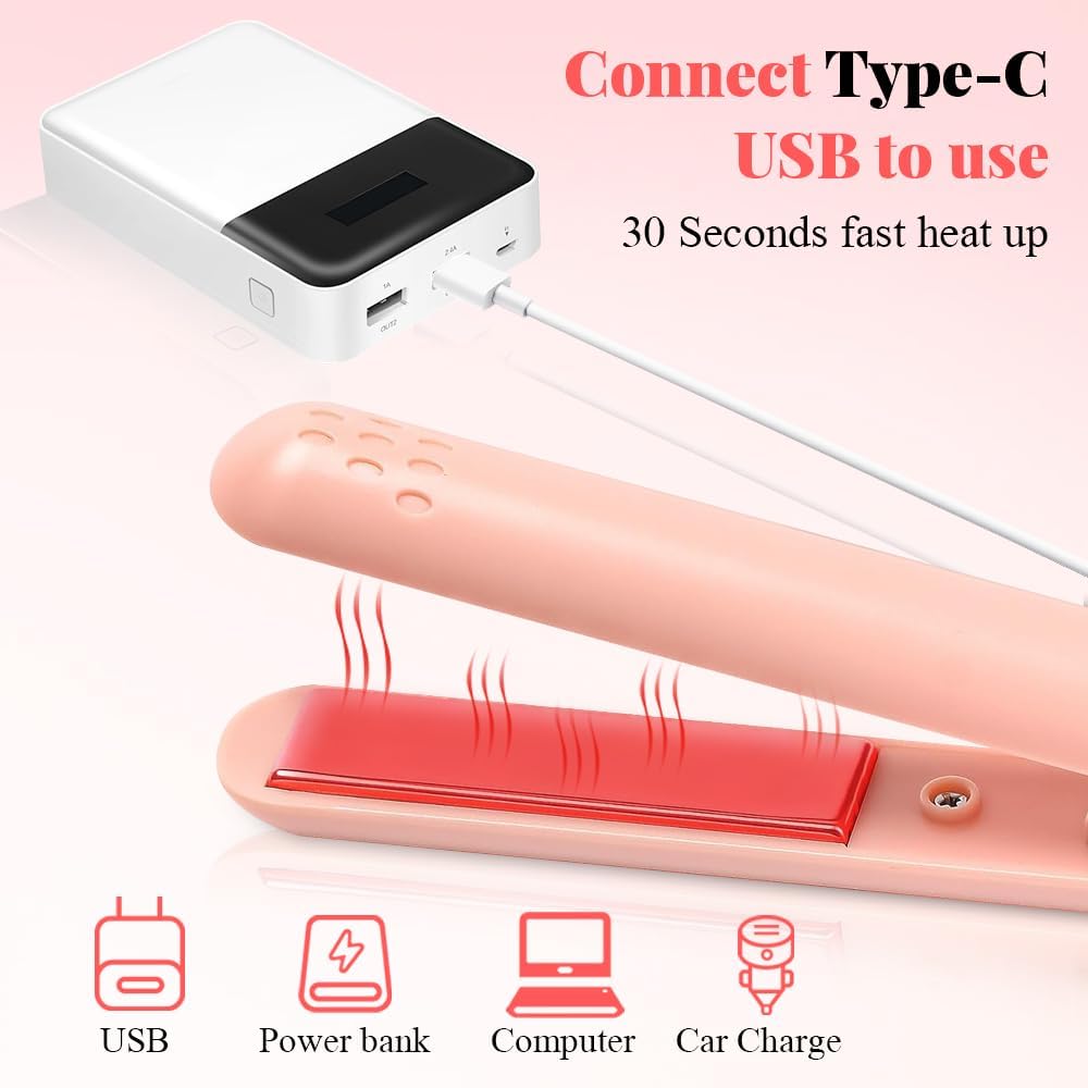 مكواة فرد الشعر 2 في 1 من جيمي، مكواة تجعيد الشعر مزدوجة الاغراض، مكواة فرد شعر صغيرة محمولة تعمل بمنفذ USB للشقة والسكن الجامعي والسفر (لا يمكن تخزين الكهرباء) (بينك)