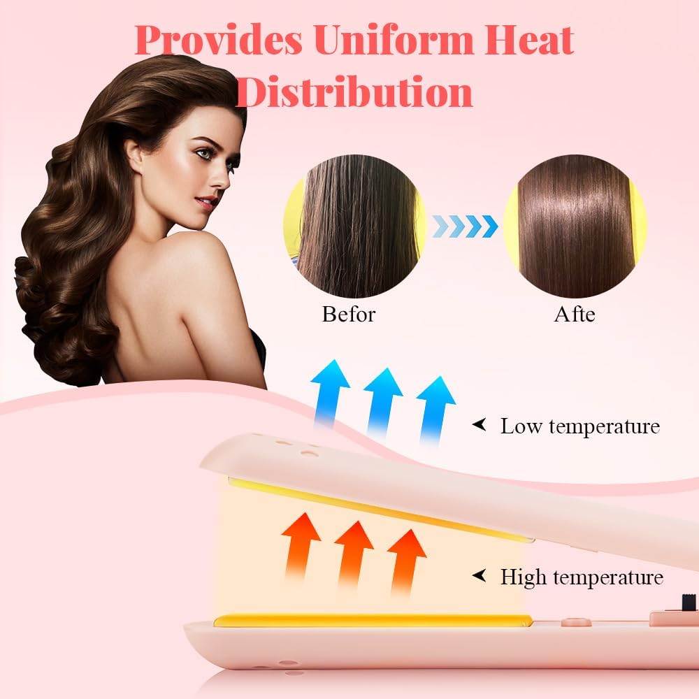 ❤️【محمولة للسفر ومريحة للحمل】: مكواة فرد الشعر صغيرة الحجم وخفيفة الوزن، مما يجعلها الرفيق المثالي للسفر. احملها في حقيبة السفر الخاصة بك للاستخدام اليومي، واستمتع بالتصفيف بدون مجهود أثناء التنقل.