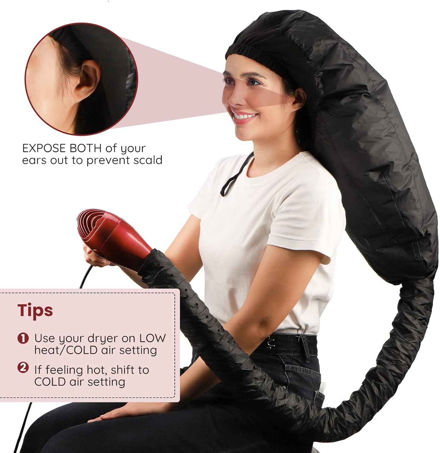 عناية احترافية بالشعر: يحول مجففات الشعر القياسية إلى أنظمة تصفيف احترافية. مثالي للترطيب العميق ومعالجة الزيت الساخن ومجموعات البكرات والعلاجات الحرارية. يساعد على تقليل تلف الشعر والحفاظ على الرطوبة للحصول على شعر أكثر صحة ولمعانًا.