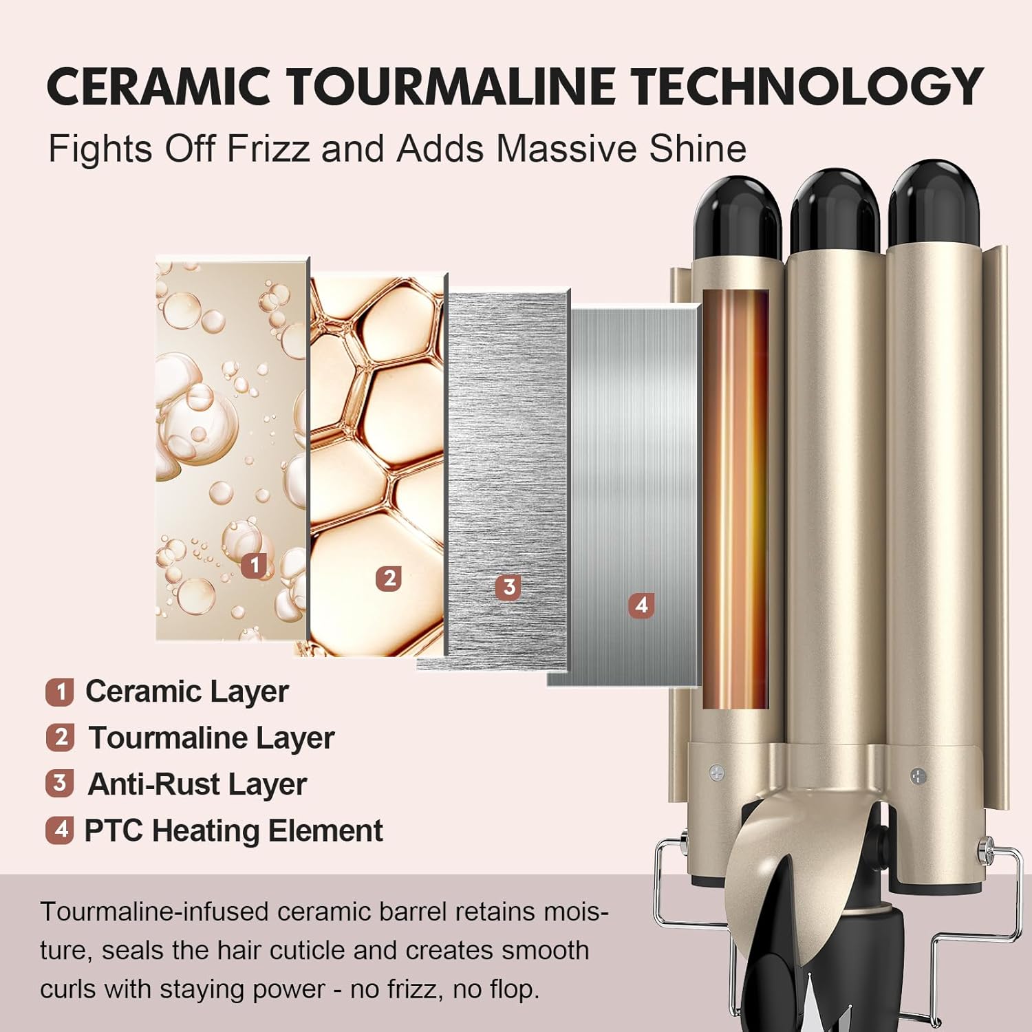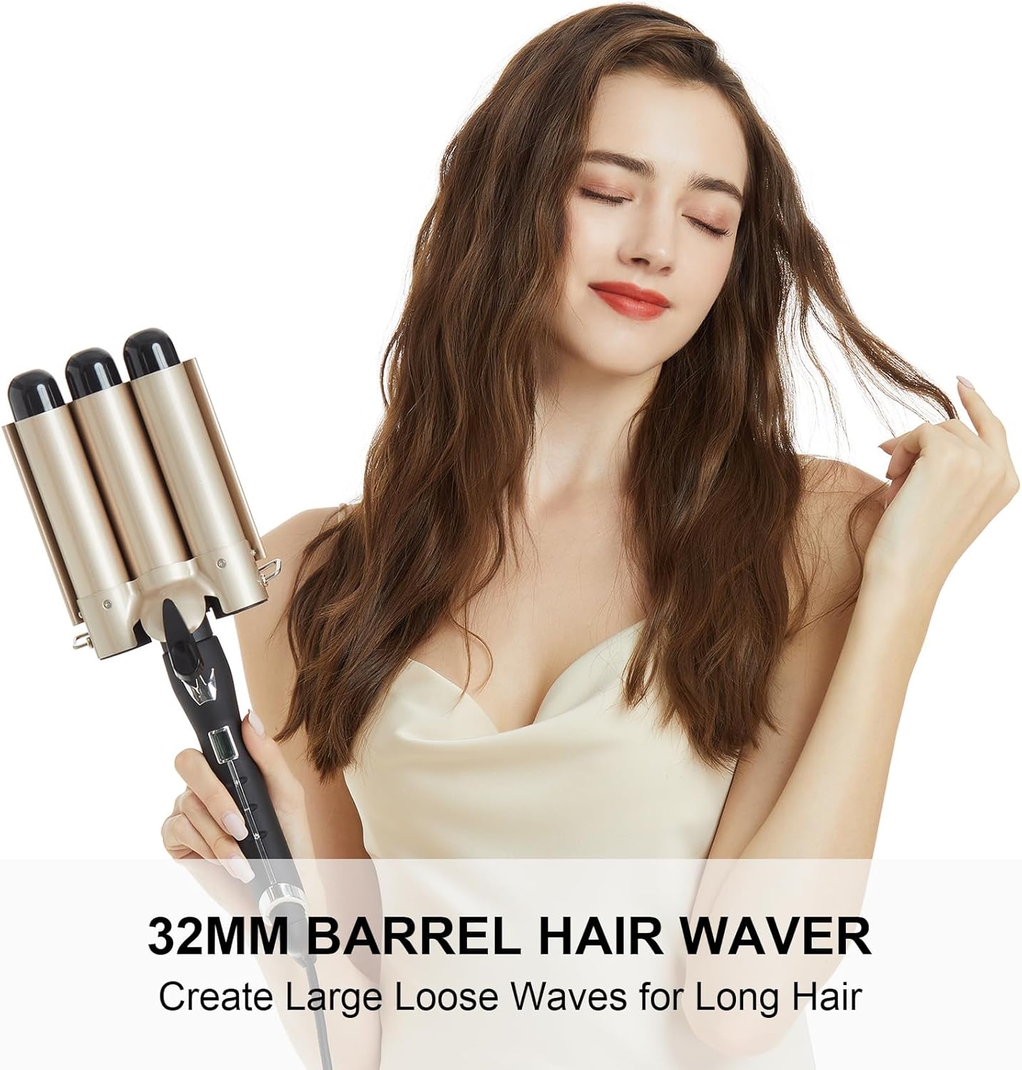 قطر الملاقط 32 ملم – موجات كبيرة طبيعية – مثالية للأوراق الطويلة: تجميع خاص مع ثلاث ألواح أسطوانية، مرحبًا بالتموجات الطبيعية. ملقط شعر مموج من ايميرفو مصمم لمنح شعرك تموجات ماء طبيعية بسرعة وعملية. بطول موجي 32 ملم، قومي بتشكيل شعر مموج عريض في دقائق. يمكنك استخدام ملقط الشعر في الحياة اليومية، ولكن أيضًا للمناسبات الخاصة مثل حفلات الزفاف والخطوبة والاحتفالات لابتكار تسريحات شعر فريدة.