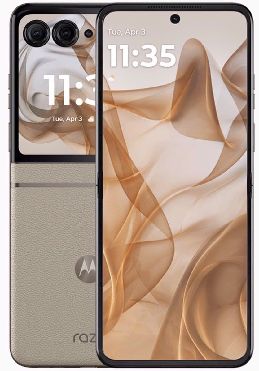 موتورولا جوال رازر 50 ثنائي شرائح الاتصال بذاكرة روم 256GB وذاكرة RAM 8GB (جي اس ام فقط | بدون سي دي ام ايه) هاتف ذكي 5G مفتوح من المصنع (بيتش ساند) – اصدار عالمي