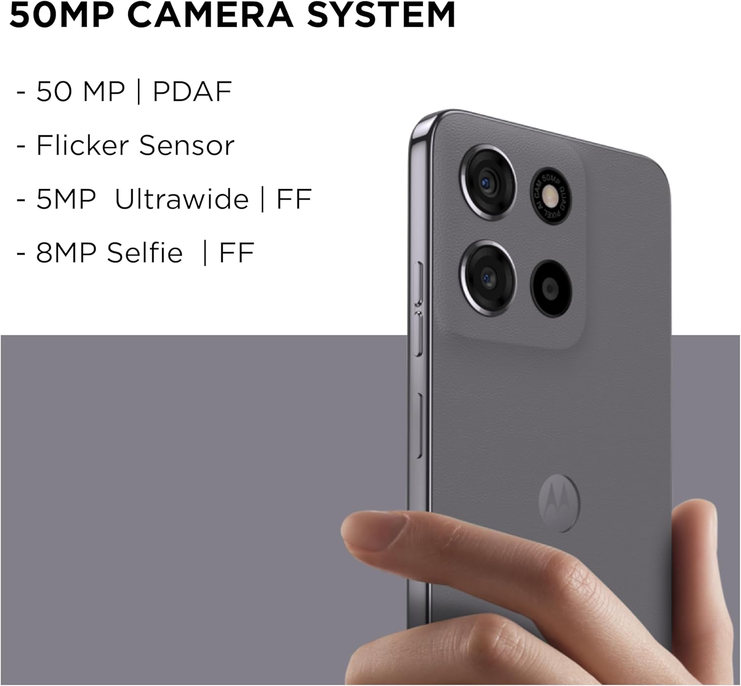 موتورولا جي 15، ذاكرة وصول عشوائي (RAM) سعة 8 جيجابايت + 16 جيجابايت، شريحتي اتصال، (ROM) سعة 256 جيجابايت، معالج ميديا تيك هيليو جي 81، شاشة 6.72 بوصة، نظام أندرويد 15، لون أخضر إجوانا