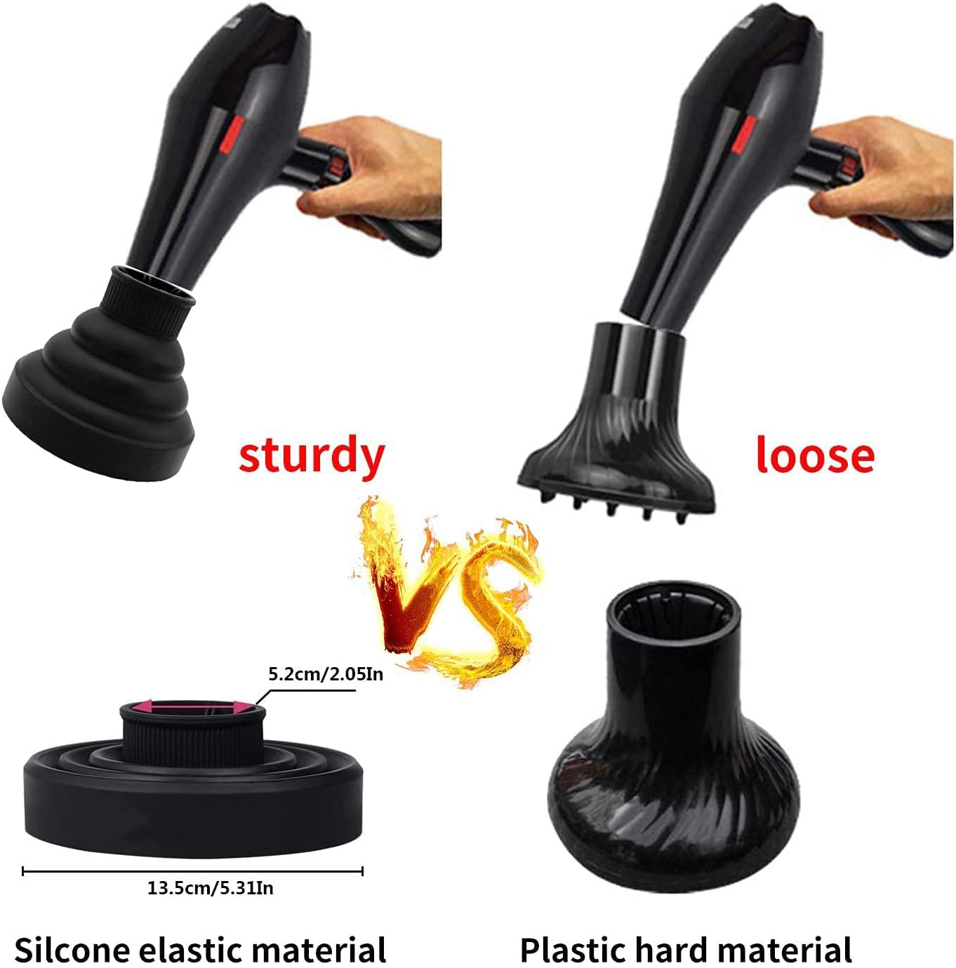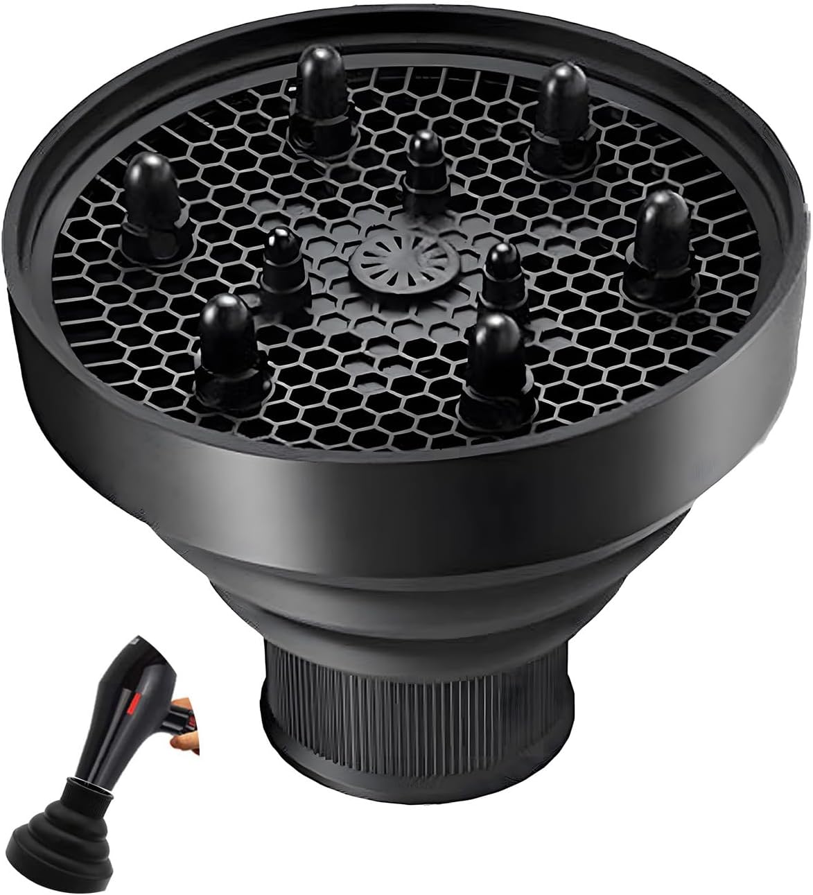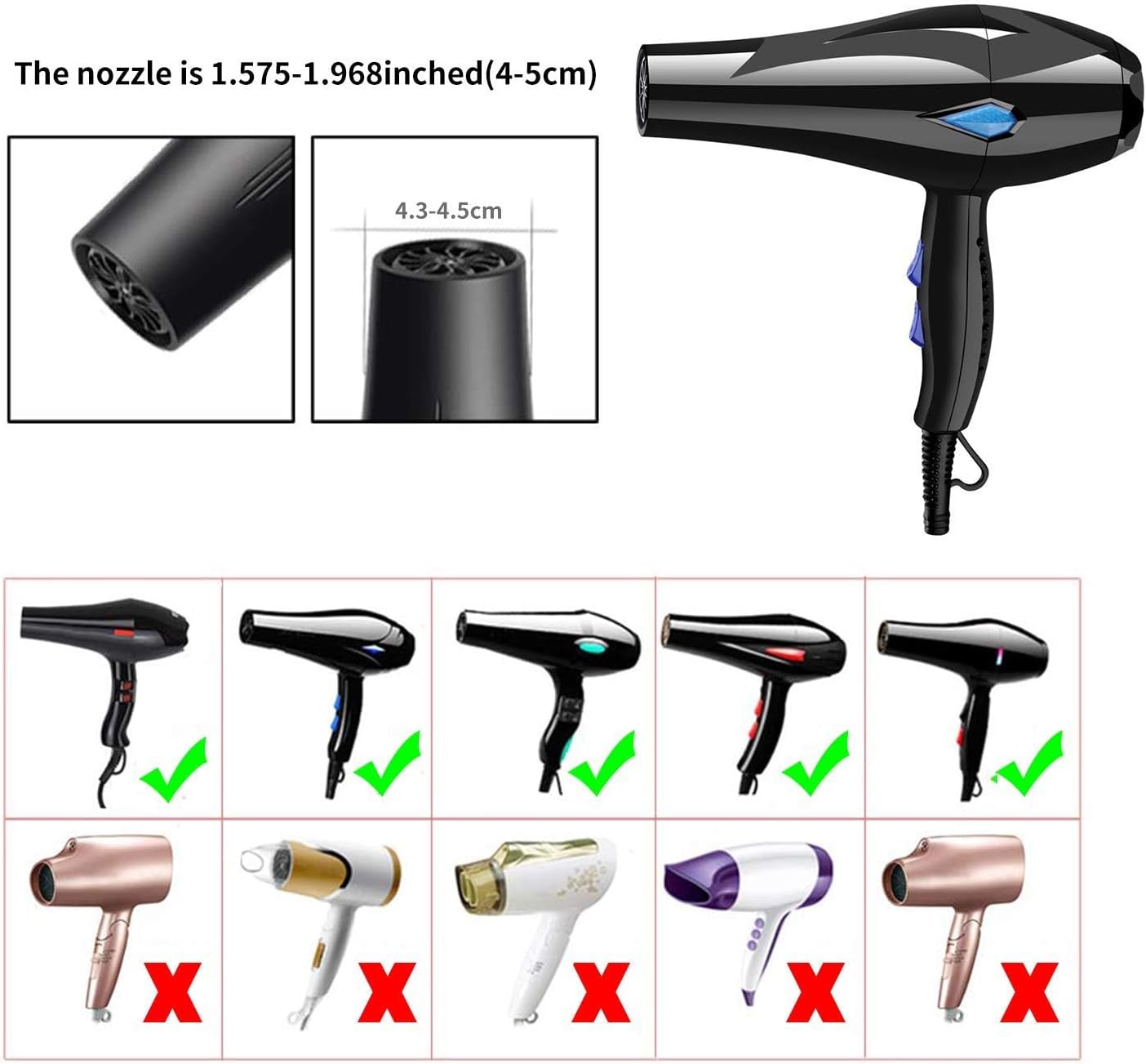 【موزع شعر عالمي】موزع مجفف الشعر هذا هو موزع عالمي يناسب معظم مجففات الشعر من 4.1 سم إلى 6.7 سم. لم يعد هناك ما يدعو للقلق بشأن نوع مجفف الشعر الذي تريد شراؤه.