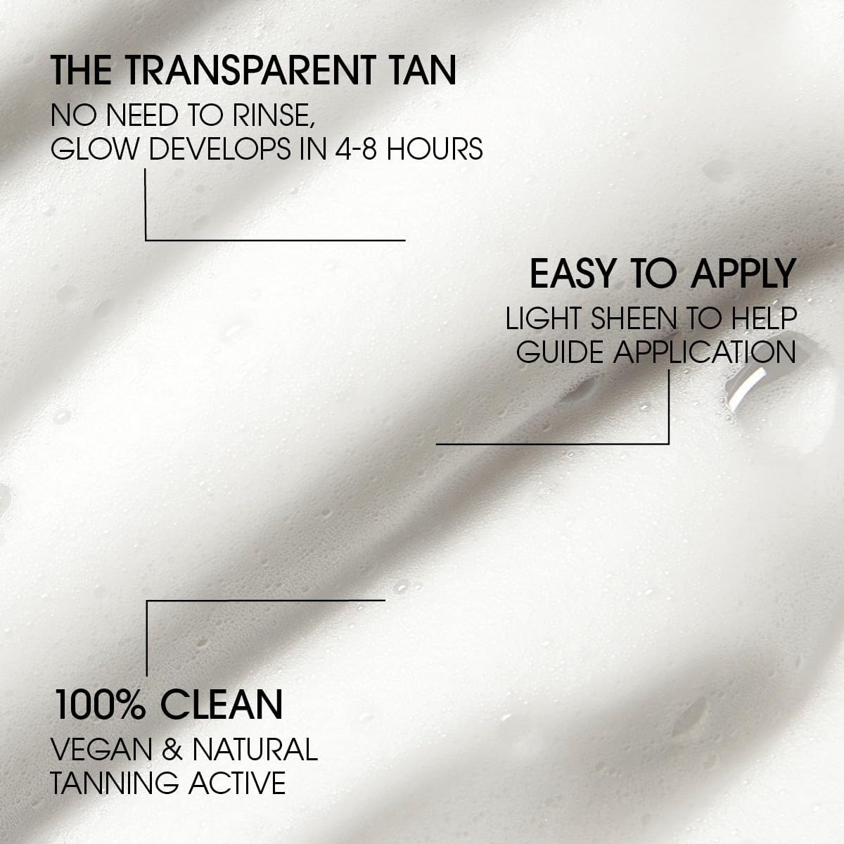 احصلي على تسمير طبيعي بدون شمس يدوم لعدة أيام. رغوة تسمير البشرة المائية خفيفة الوزن هذه غنية بعوامل تسمير مشتقة طبيعيًا بنسبة 100% تعمل على إنعاش بشرتك وإنعاشها، دون الحاجة إلى شطفها