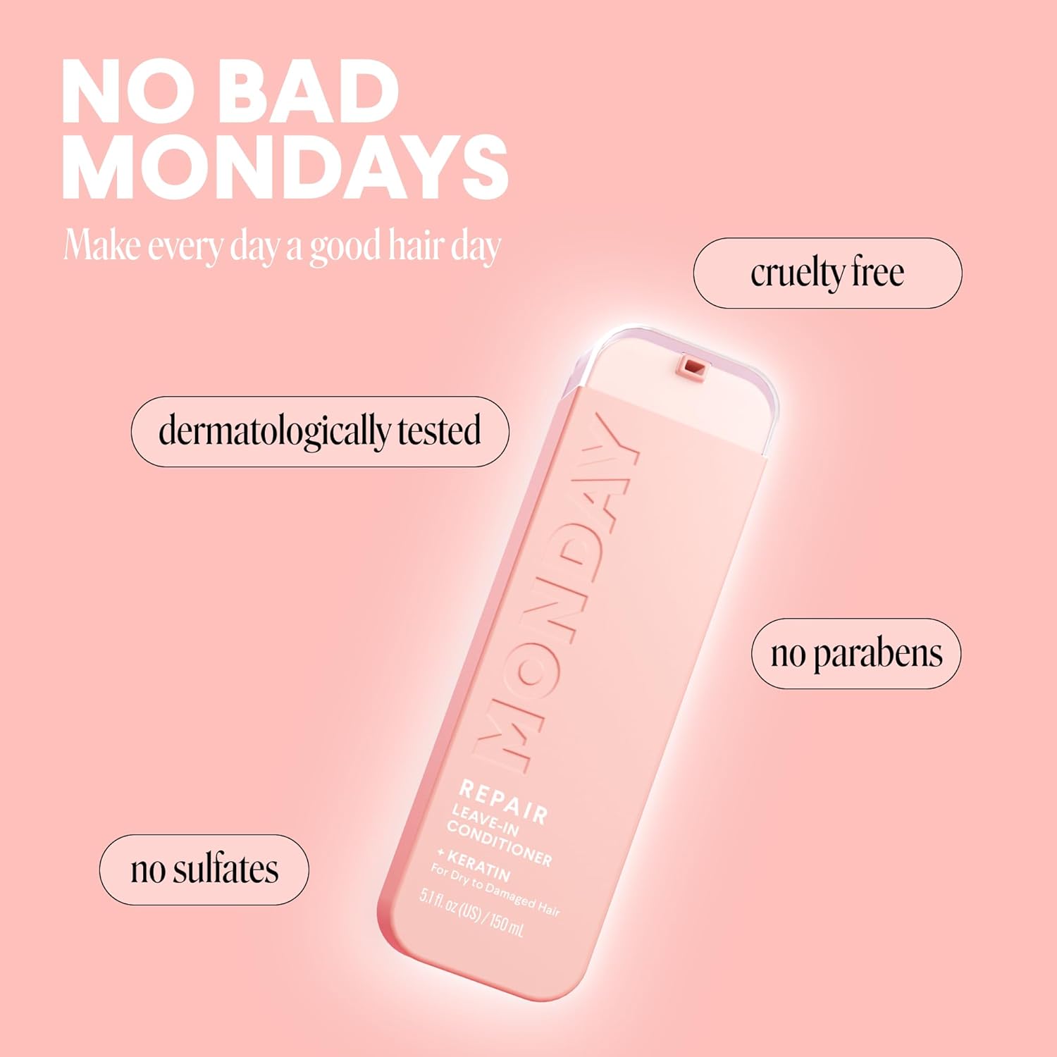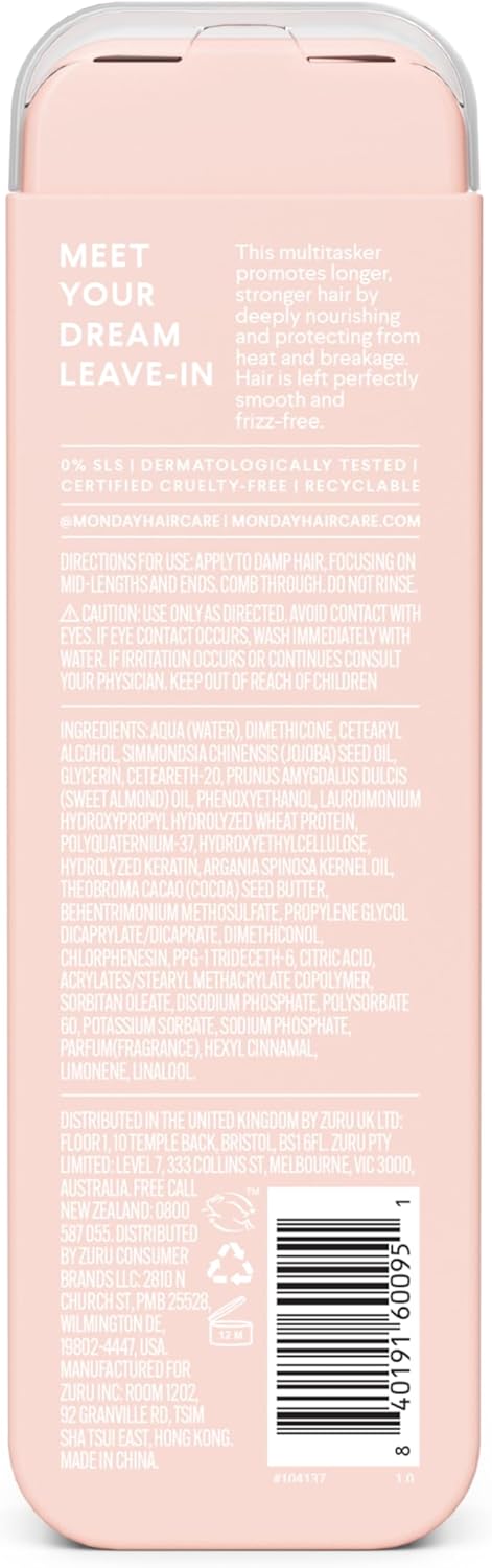 مونداي هير كير بلسم ريبير ليف ان متعدد المهام يعزز الشعر الطويل والأقوى من خلال التغذية العميقة، بالإضافة إلى الحماية من الحرارة والتقصف. بفضل الكيراتين المعزز وبروتين القمح والزيوت الطبيعية مثل الجوجوبا وزيت اللوز، يترك الشعر ناعمًا تمامًا وخاليًا من التجعد. تم اختبار التركيبة من قبل أطباء الجلد، ودرجة الحموضة متوازنة وخالية من SLS. بالإضافة إلى ذلك، تمت الموافقة على منتجات مونداي للعناية بالشعر باعتبارها خالية من الحيوانات في إطار برنامج ليبينج باني وهي معتمدة من بيتا كعلامة تجارية لم تختبر على الحيوانات. مع يوم الاثنين، يمكن أن يكون كل يوم يومًا جيدًا للشعر!