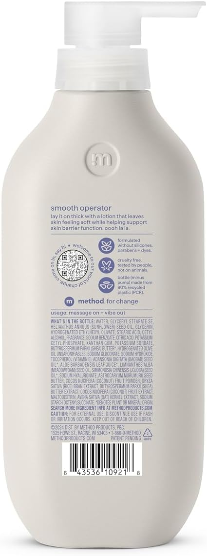ميثود لوشن للجسم سيمبلي نوريش وجوز الهند وحليب الارز وزبدة الشيا، 24 ساعة من الترطيب 14 اونصة