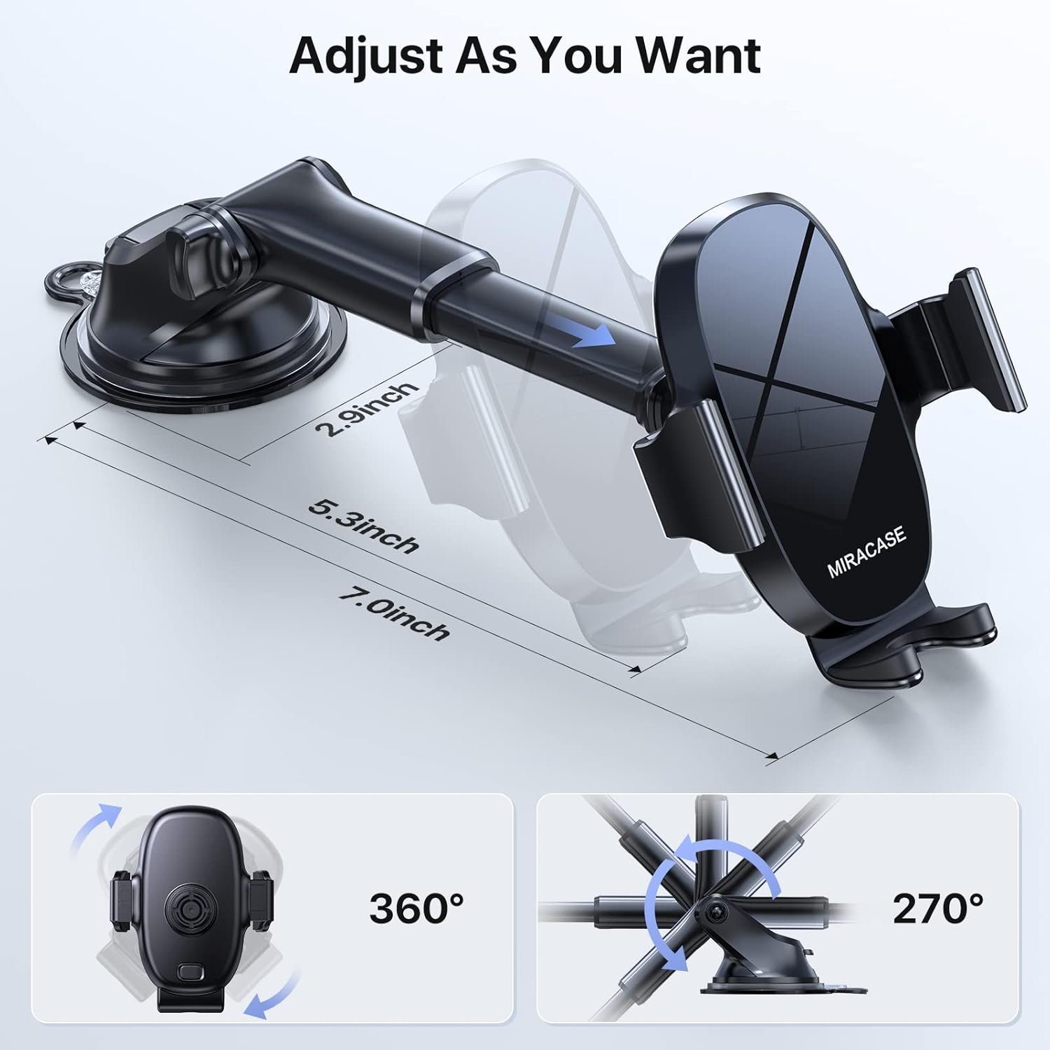 🚗【حامل هاتف للسيارة 4 في 1】يعتمد حامل هاتف السيارة متعدد الوظائف ميراكايس على كوب شفط قوي ومشبك تهوية من الجيل الثاني، يمكن لحامل الهاتف للسيارة تثبيت هاتفك بإحكام على لوحة القيادة والزجاج الأمامي وفتحة التهوية حتى على الطرق الوعرة. حامل موبايل للسيارة يناسب معظم السيارات والشاحنات وسيارات الدفع الرباعي والشاحنات الصغيرة وسيارات الأجرة؛ أفضل مساعد لسائقي اوبر وكريم. ويمكن استخدامه أيضًا للمكتب والمطبخ والمكتب وأكثر من ذلك.