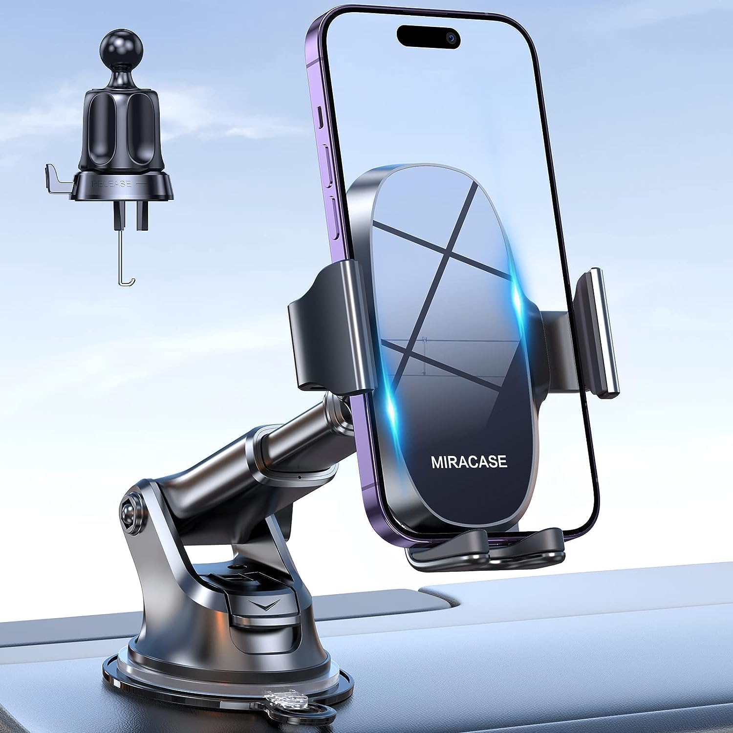 ميراكايس حامل موبايل للسيارة 4 في 1 للسيارة، حامل جوال للسيارة للتابلوه وفتحة التهوية والزجاج الامامي، متوافق مع ايفون 14 برو ماكس 13 12 11 وسامسونج S23 وشاومي وجوجل والمزيد