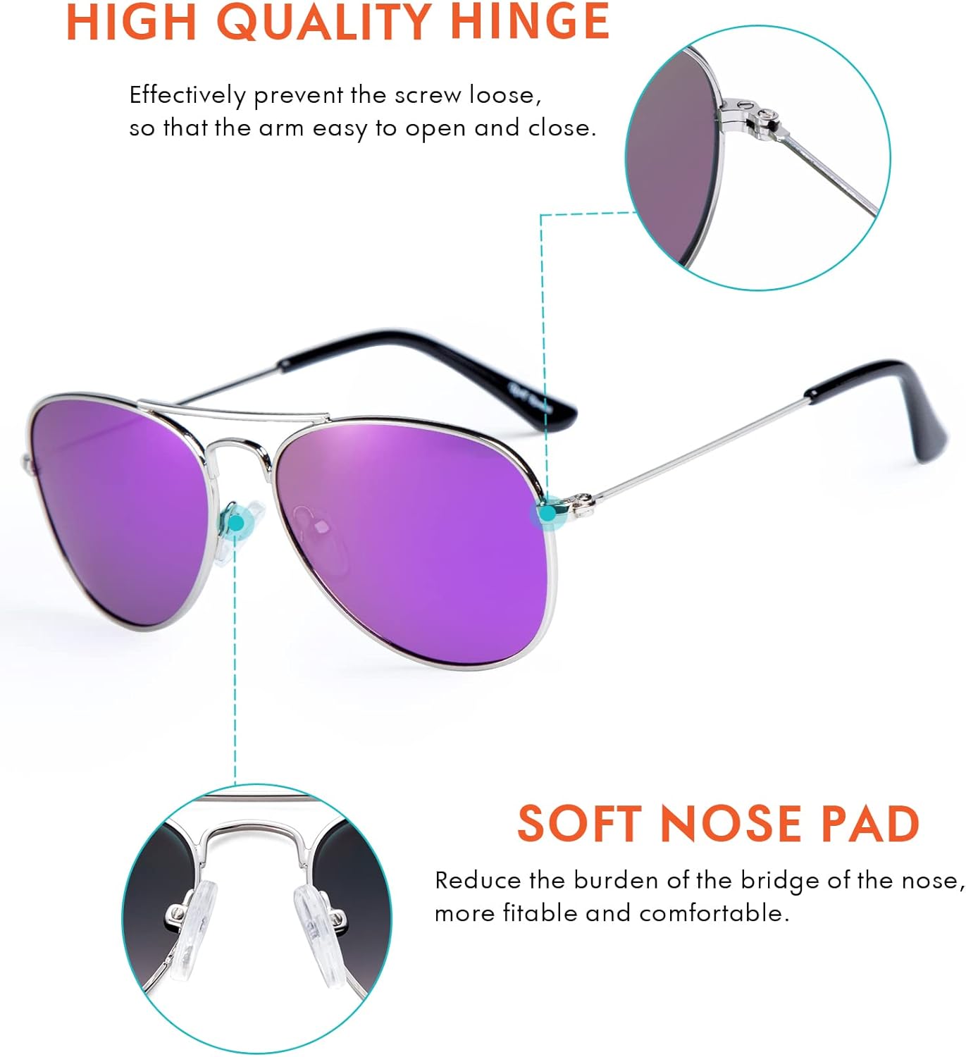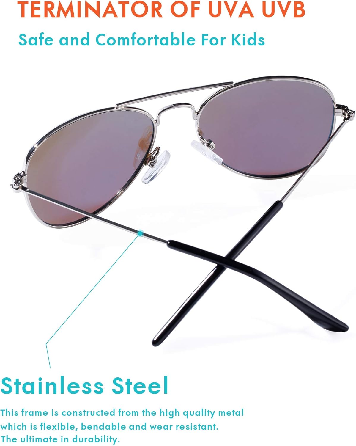 يجمع النمط الكلاسيكي الكلاسيكي من بايلوت بين صناعة الطلاء الكهربائي الرائعة، مادة خليط معدني عالية الجودة، وسادة أنف ناعمة من بلاستيك PVC، توفر نظارات روسيني الشمسية للأطفال من روكف روسيني تجربة ارتداء عصرية وعملية؛