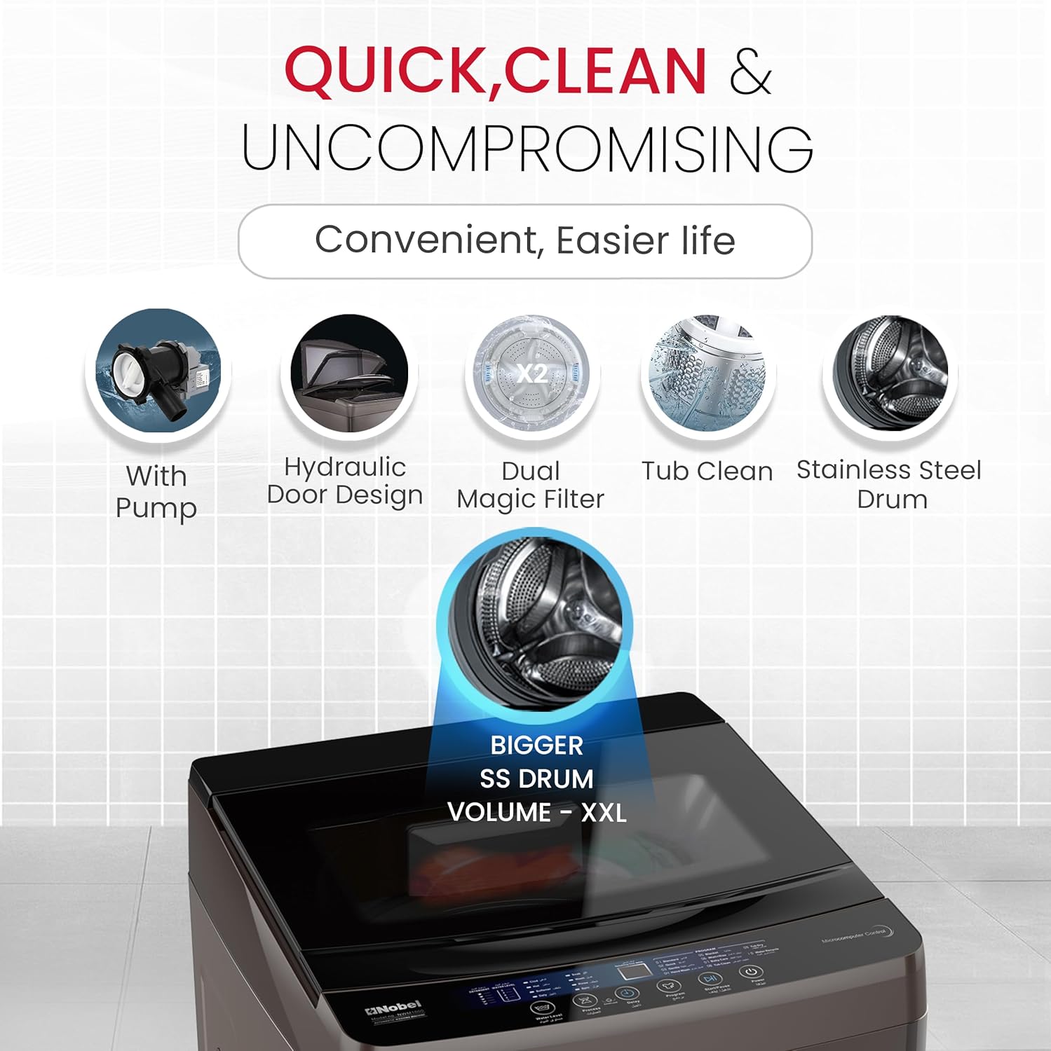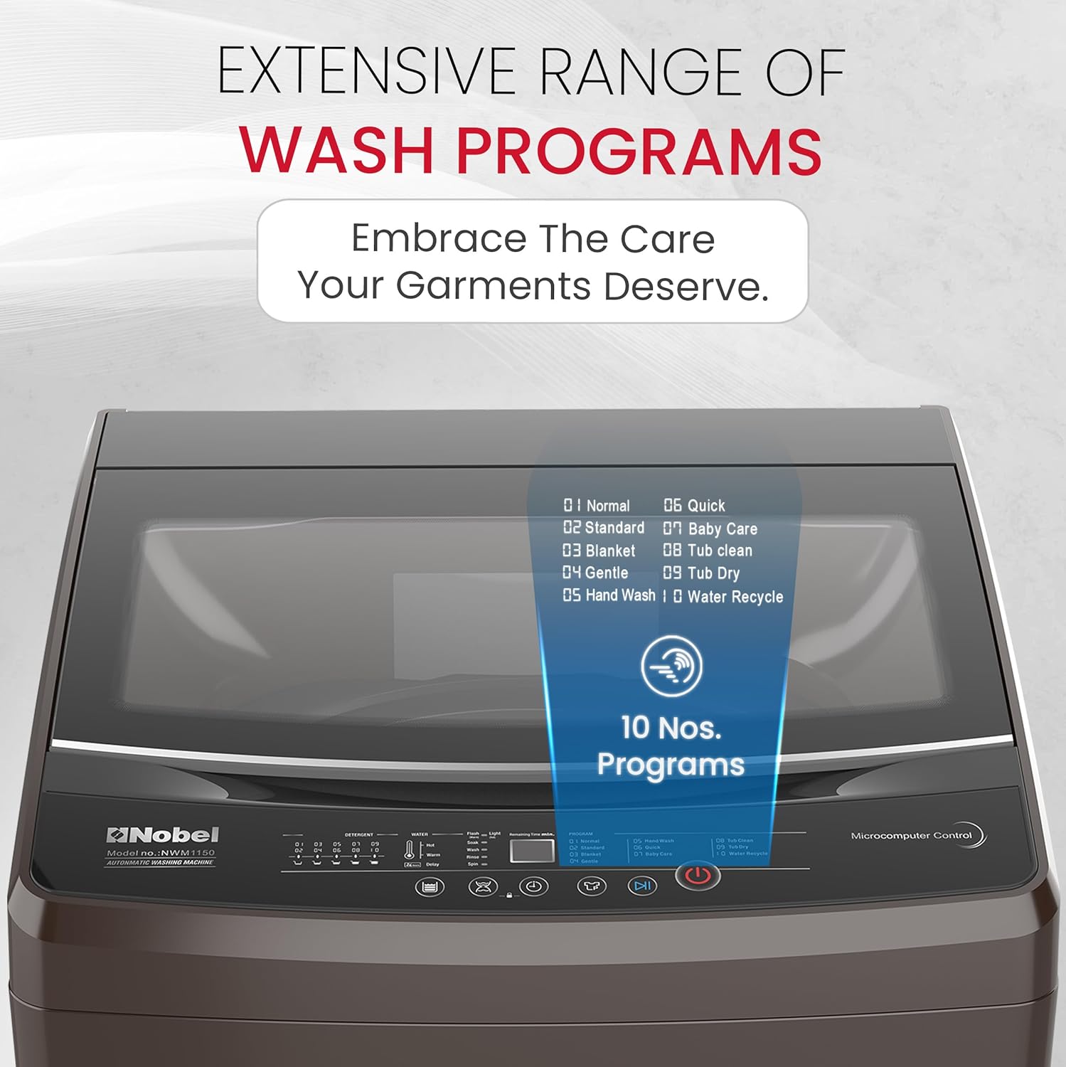 نوبل غسالة بسعة 14 كجم، تحكم الكتروني، شاشة LED رقمية، 10 برامج، محرك من الالومنيوم، اسطوانة من الستانلس ستيل، موفرة للطاقة، تصنيف 3 نجوم NWM1600، رمادي