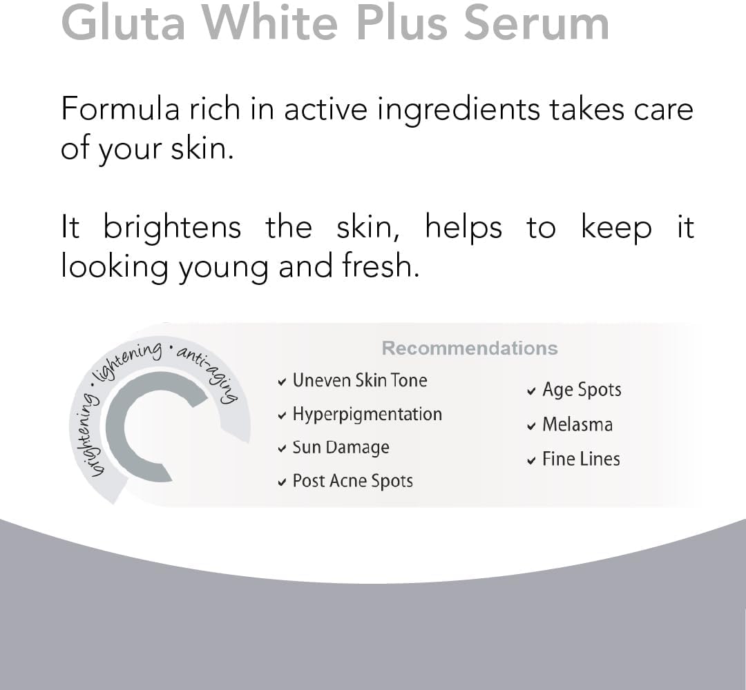 سيروم جلوتا وايت بلس هو حل متخصص للعناية بالبشرة مصمم لتفتيح بشرتك وتجديدها. يتكون هذا المصل من الجلوتاثيون القوي وشكل ثابت من الريتينول، ويوفر نهجًا شاملاً لتحقيق بشرة أكثر إشراقًا وشبابًا. سيروم وايت بلس مع الجلوتاثيون له خصائص قوية لتفتيح البشرة. بالإضافة إلى ذلك، فإن الشكل الثابت للريتينول المستخدم في السيروم يحسن نشاطه المضاد للشيخوخة. بفضل المصل متعدد الاتجاهات يقلل من ظهور البقع الداكنة ويساعد على استعادة مظهر البشرة الشبابية. تجنب حمامات الشمس واستخدم الحماية من الشمس بعامل حماية من الشمس بدرجة 30 أو أعلى أثناء استخدام المنتجات التي تحتوي على الريتينول. تجنب منطقة العين. يُحفظ بعيدًا عن متناول الأطفال. يجب عدم استخدام المنتج من قبل النساء الحوامل.