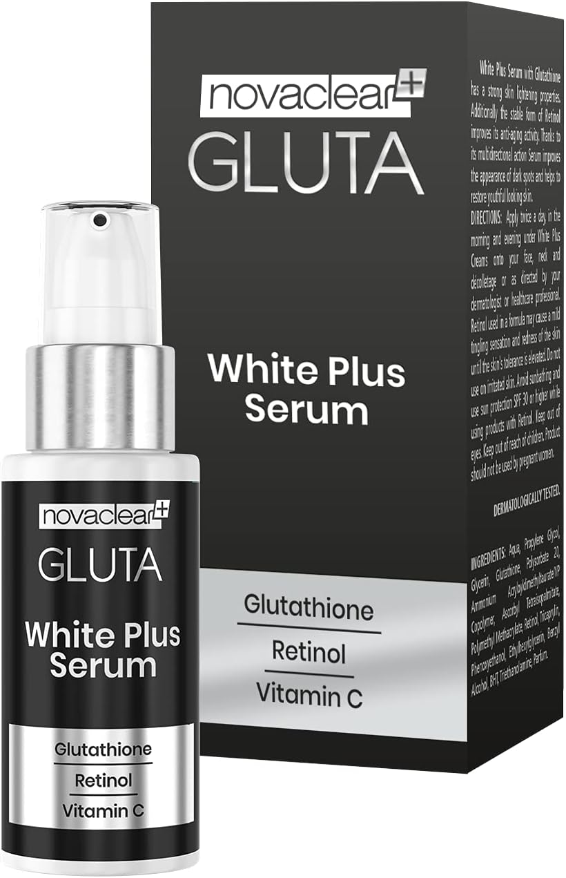 نوفاكلير سيروم وايت بلس من جلوتا مع الجلوتاثيون والريتينول وفيتامين سي، لتفتيح البشرة وتقليل التجاعيد والجلد الخالي من العيوب والعناية اليومية والبشرة الناعمة وخصائص تفتيح البشرة القوية