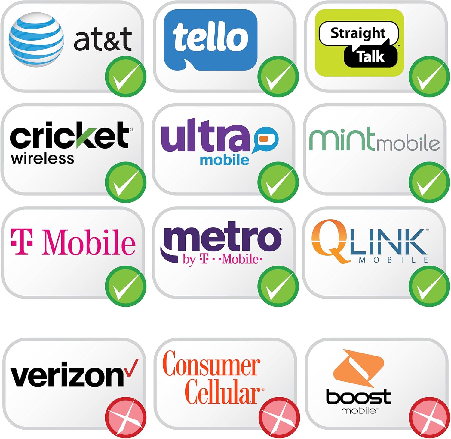 غير متوافق مع فيريزون أو بوست موبايل أو تراكفون أو بلس سيلولار أو يونيون وايرلس أو سبيكتروم أو أي حامل سي دي ام ايه في العالم. لمزيد من معلومات شركة الشحن، اتصل بدعم العملاء لدينا.