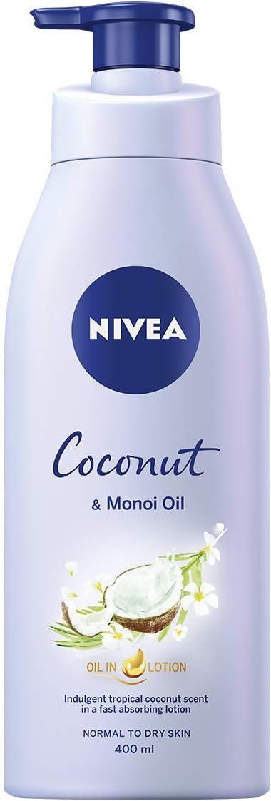 نيفيا لوشن من اويل ان لوشن، زيت جوز الهند وزيت مونوي (400 مل)، مرطب لتجديد الجسم برائحة جوز الهند الاستوائية وتسريب مونوي قوي، كريم مرطب 48 ساعة، لوشن نيفيا للجسم