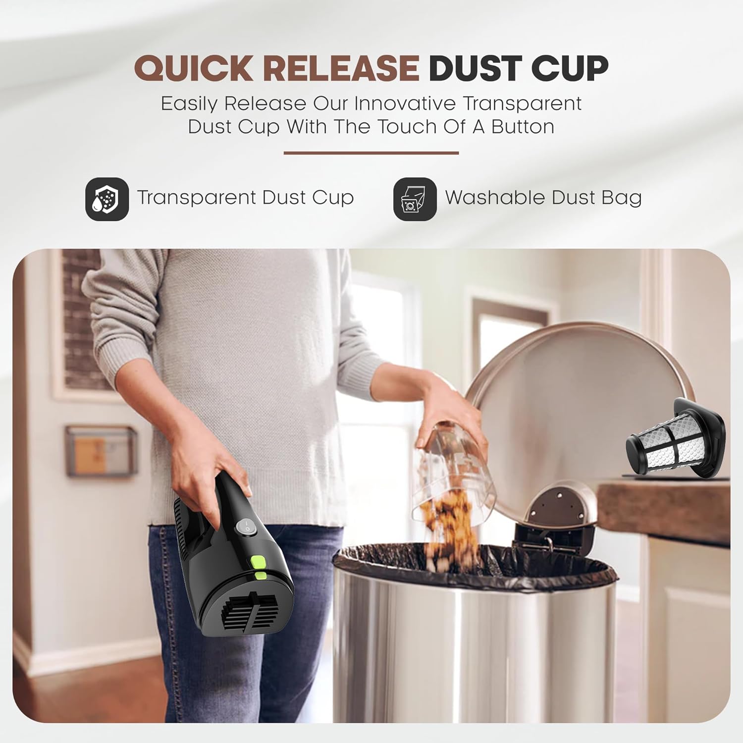 حماية من الغبار وكوب شفاف للغبار: يتميز بكيس غبار قابل للغسل وكوب غبار شفاف، مما يسمح لك برؤية متى يكون ممتلئًا ويحافظ على النظافة بسهولة دون متاعب.