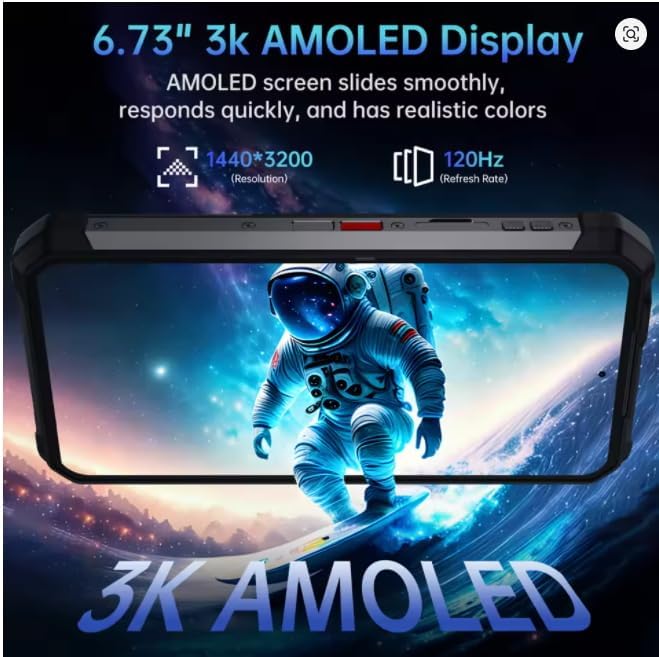 شاشة AMOLED مقاس 6.75 انش 3 كيه ميديا تيك ديمنستي 8300/3.35GHz/5G/4mn اندرويد 14، ان اف سي، قاذف الأشعة تحت الحمراء، كاميرا تحت الماء، وضع القفازات