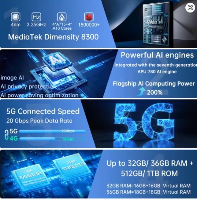ذاكرة RAM تصل إلى 32/GB (16+16GB افتراضية)، ذاكرة روم 512GB