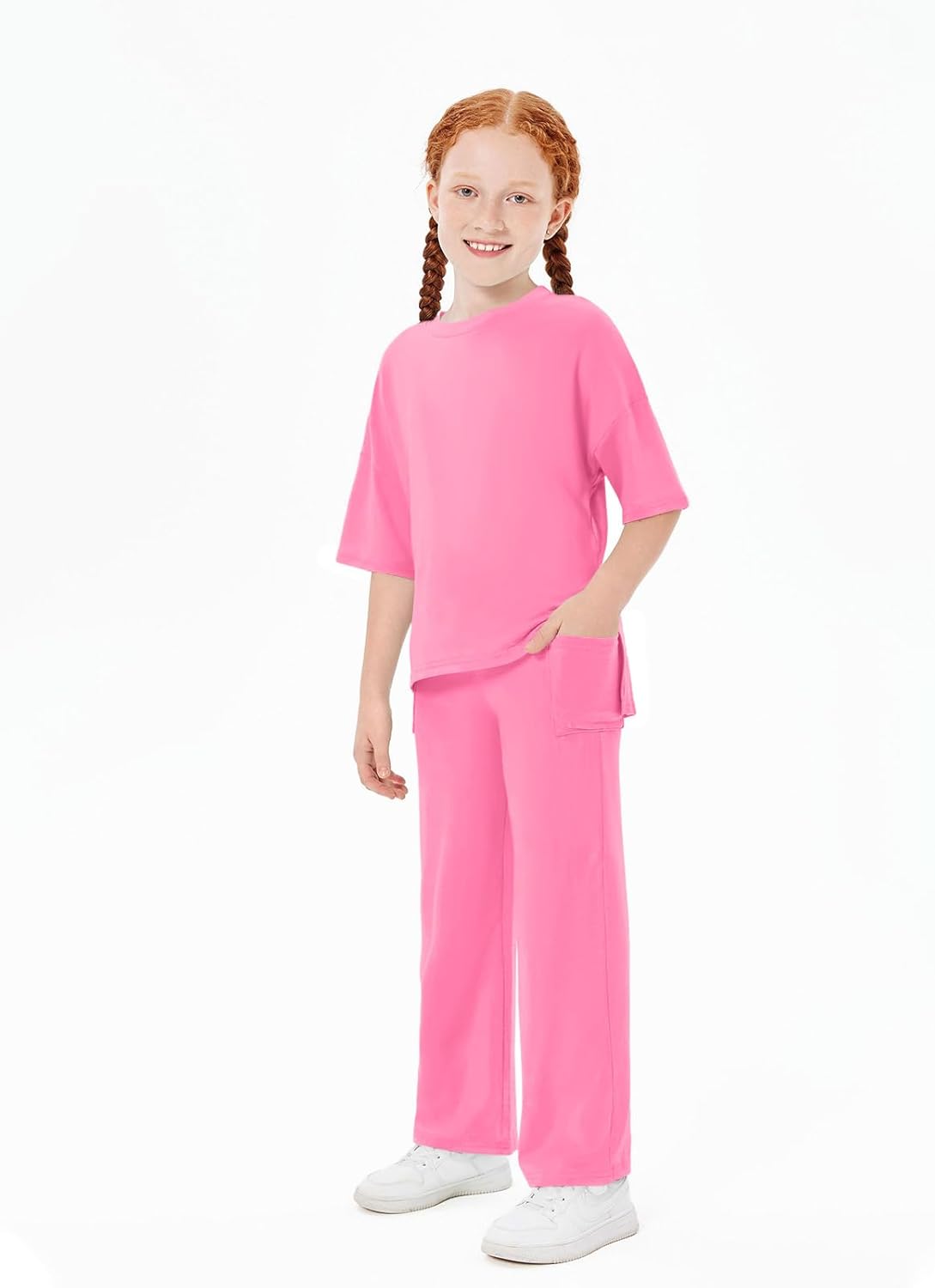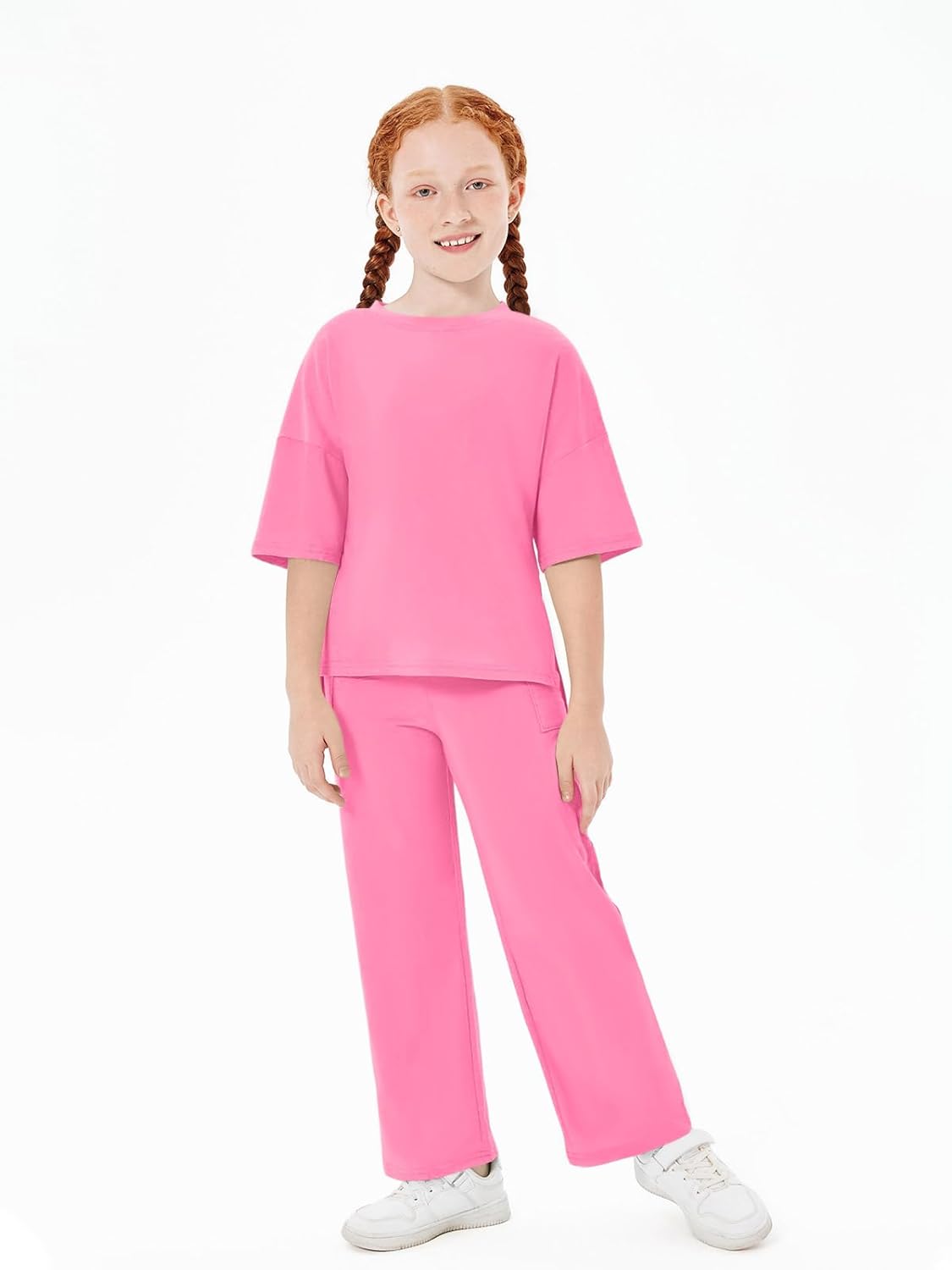 تتيح أطقم ملابس الاسترخاء للبنات مع بنطلون واسع الساق مساحة واسعة للساق، مما يمنحك ملاءمة مريحة. طقم البدلات الرياضية للبنات مثالي للاسترخاء في المنزل أو القيام بالمهام، مما يوفر لك تجربة راحة فائقة. التصميم الأنيق والمظهر المعاصر يجعلان هذه الملابس المكونة من قطعتين خيارًا عصريًا لأي نزهة كاجوال أو مناسبة مريحة.