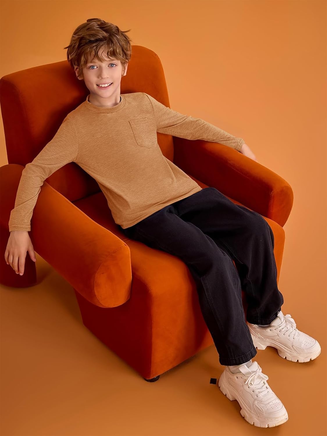 شراء هالو مونينغ قمصان للاولاد باكمام طويلة ورقبة دائرية ضيقة كاجوال مع جيب على الصدر لعمر 5-14 سنة اون لاين من امازون او نون وحراج هالو مونينغ قمصان للاولاد باكمام طويلة ورقبة دائرية ضيقة كاجوال مع جيب على الصدر لعمر 5-14 سنة