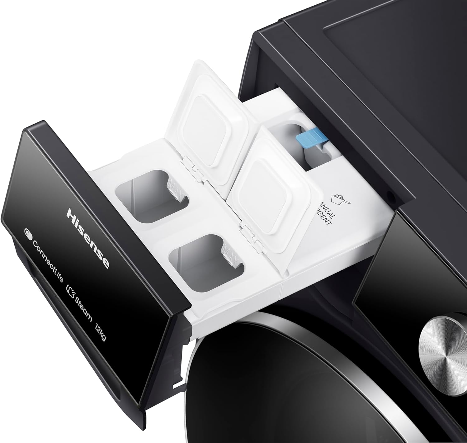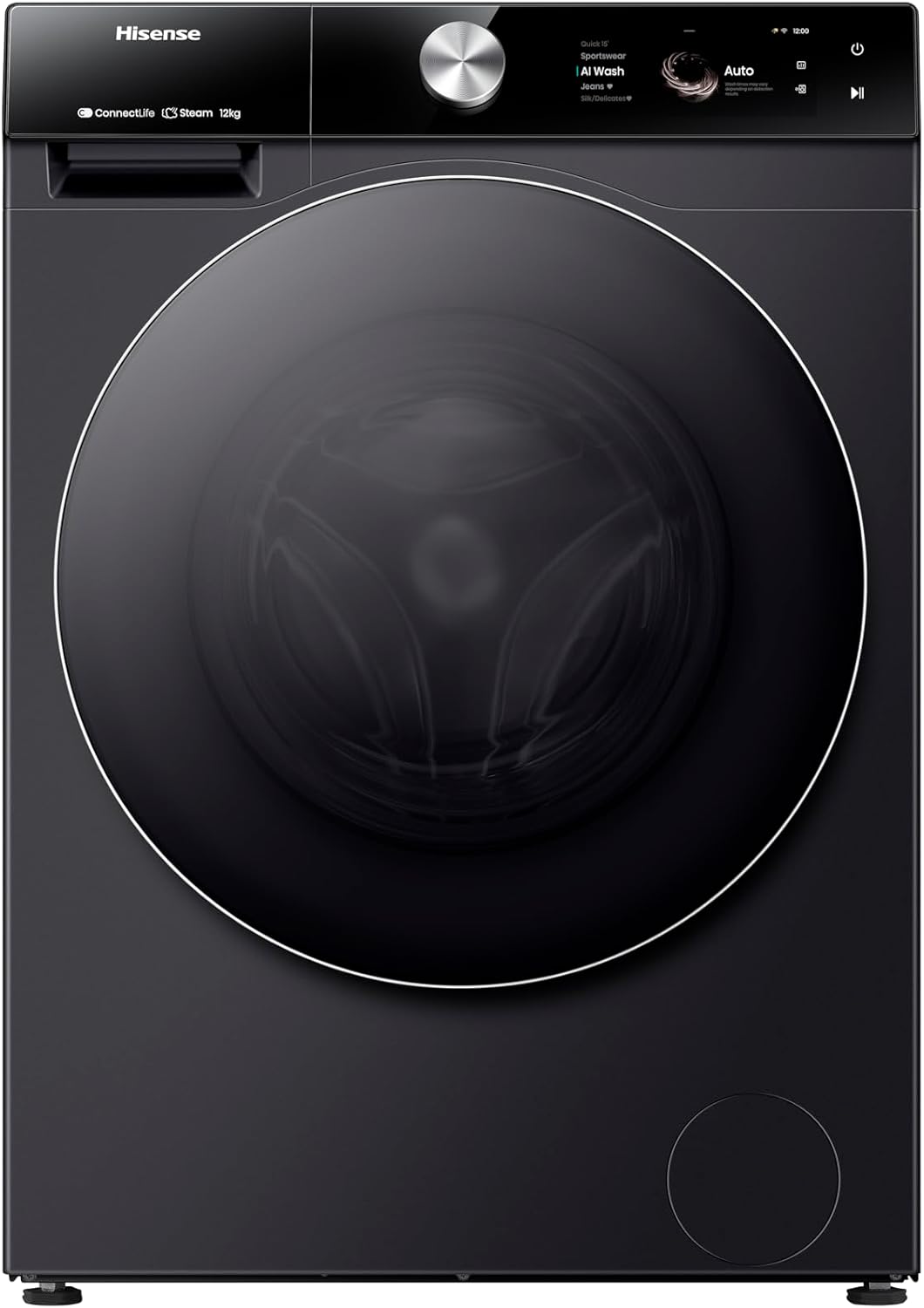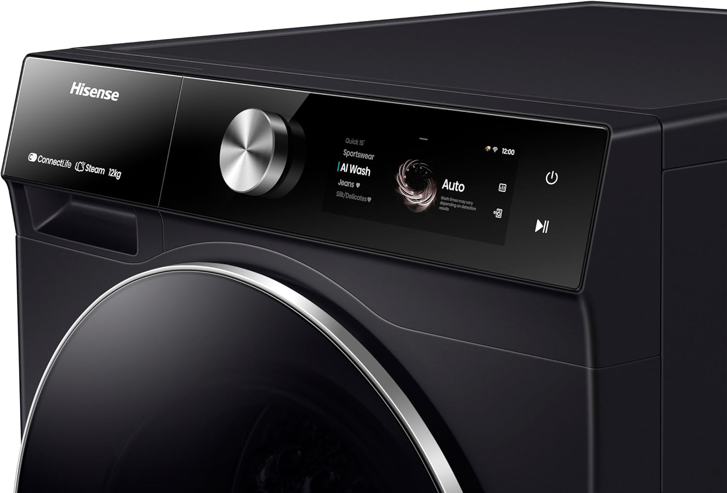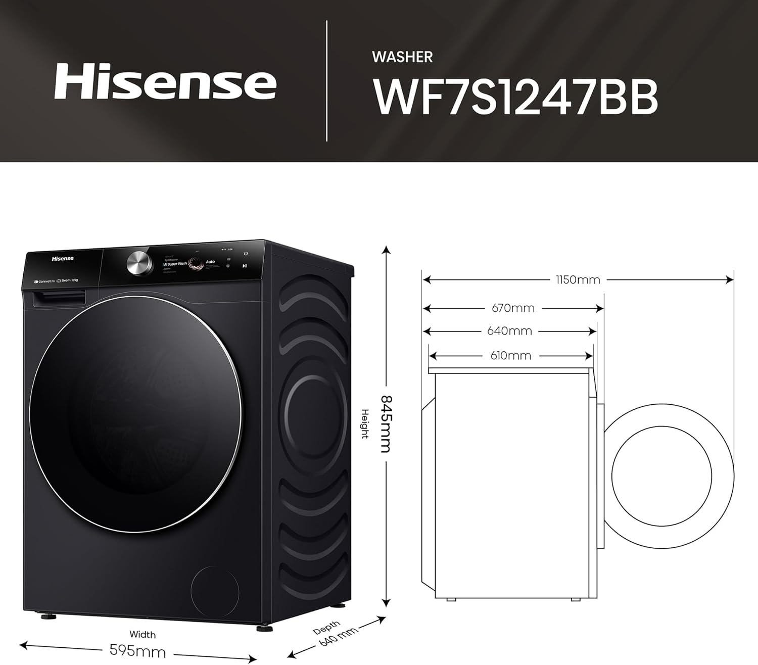 هايسينس غسالة WF7S1247BB سلسلة 7S بمحرك عاكس وواي فاي ذكي وتقنية سوبر ووش بالذكاء الاصطناعي، 1400 دورة في الدقيقة، مراقبة ذكية للطاقة، 20 برنامج، نظام جرعات تلقائي – اسود بريميوم