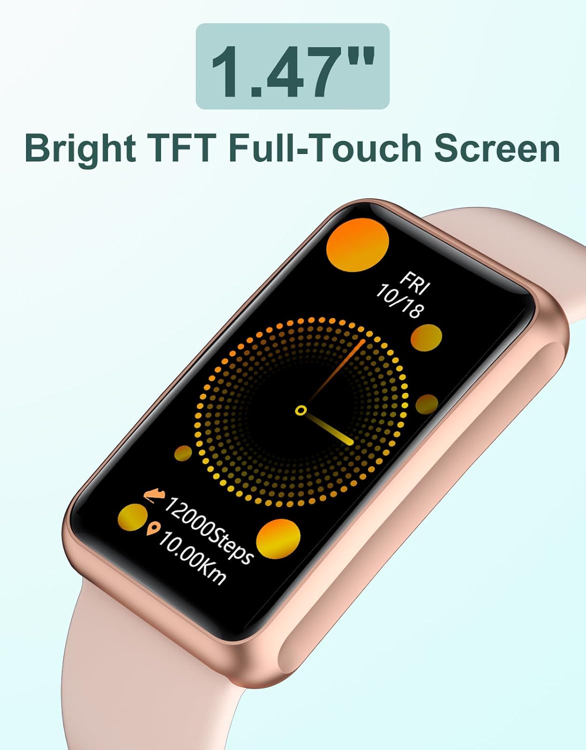 【جهاز تتبع اللياقة البدنية مع شاشة لمس ملونة كبيرة】- على عكس معظم أجهزة تتبع اللياقة البدنية التقليدية مع زر اللمس فقط، يتميز جهاز تتبع اللياقة البدنية الخاص بنا بشاشة TFT ملونة كبيرة تعمل باللمس بالكامل مقاس 1.45 انش مع سطوع قابل للتعديل، فإنه يضمن لك تجربة استخدام سلسة ووضوح. مع 5 أقراص ساعة مدمجة، تناسب ساعة اللياقة البدنية هذه النساء والرجال.