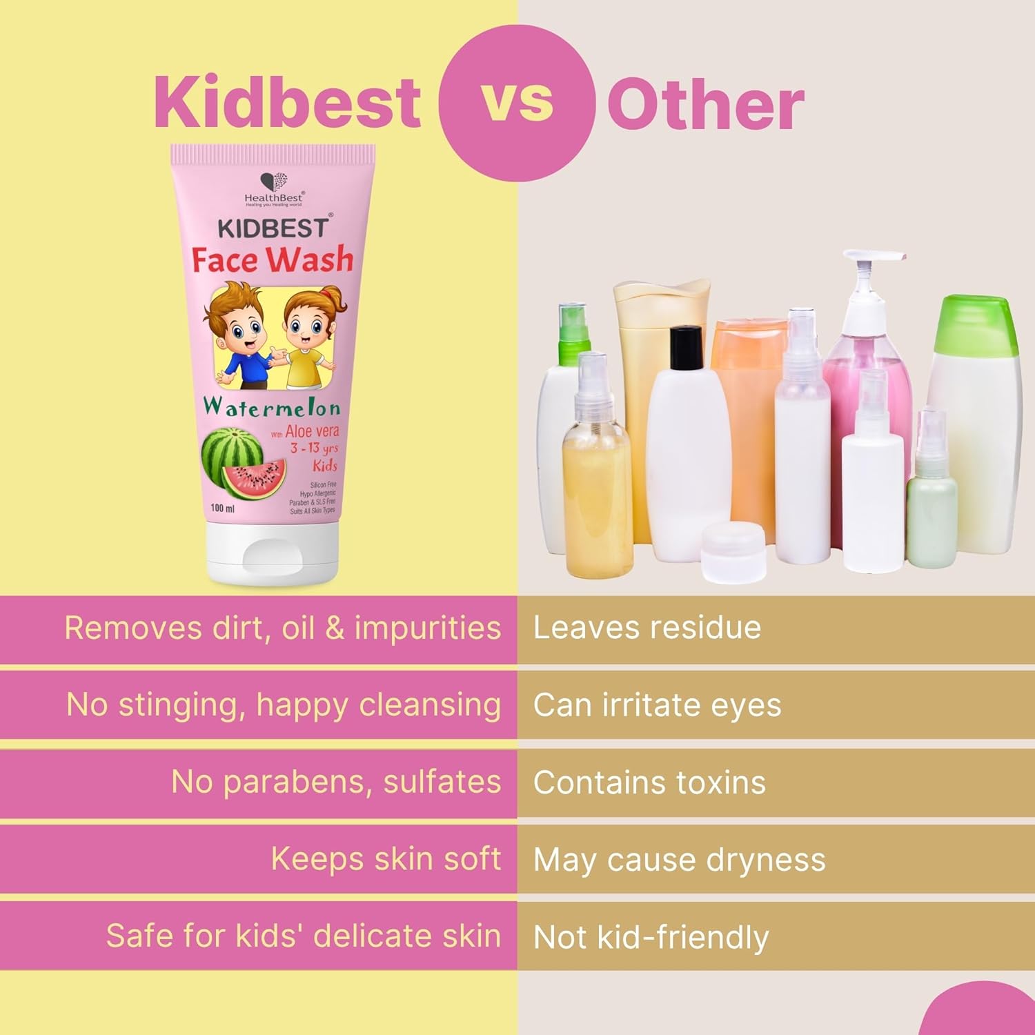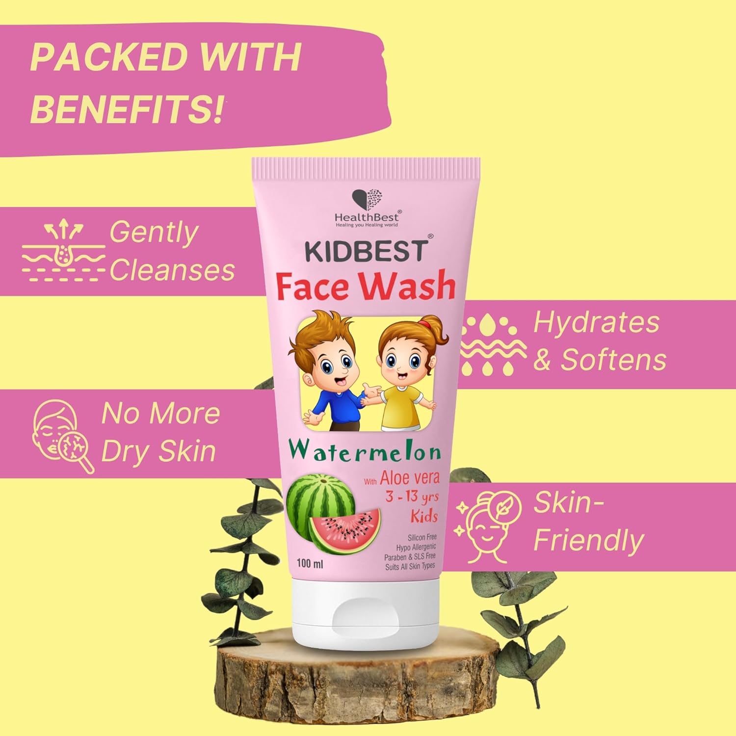 هيلث بيست غسول وجه للاطفال من كيدبيست للبشرة الحساسة والجافة العادية المسيل للدموع والبارابين خالي من كبريتات الصوديوم بنكهة البطيخ 100 مل