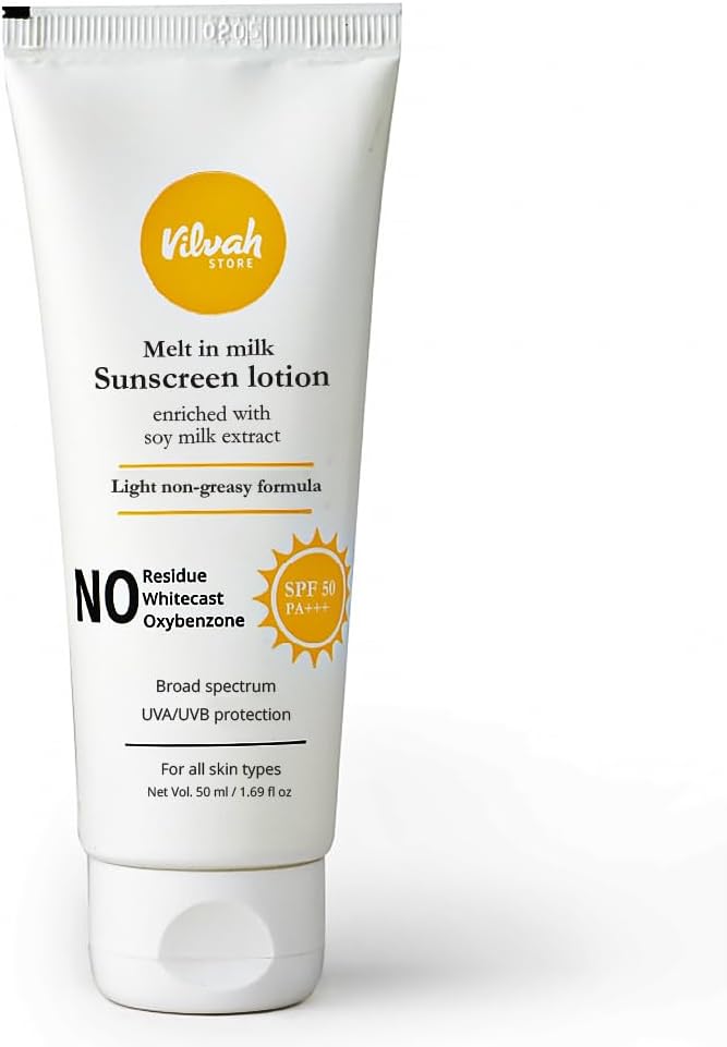 واقي الشمس ميلت ان ميلك من فيلفا بعامل حماية من الشمس 50 PA+++ هو لوشن واقٍ من الشمس مائي مع جودة مستخلص حليب الصويا. تركيبته خفيفة الوزن وغير الدهنية مناسبة للمناخ الرطب دون ترك أي طبقة بيضاء.