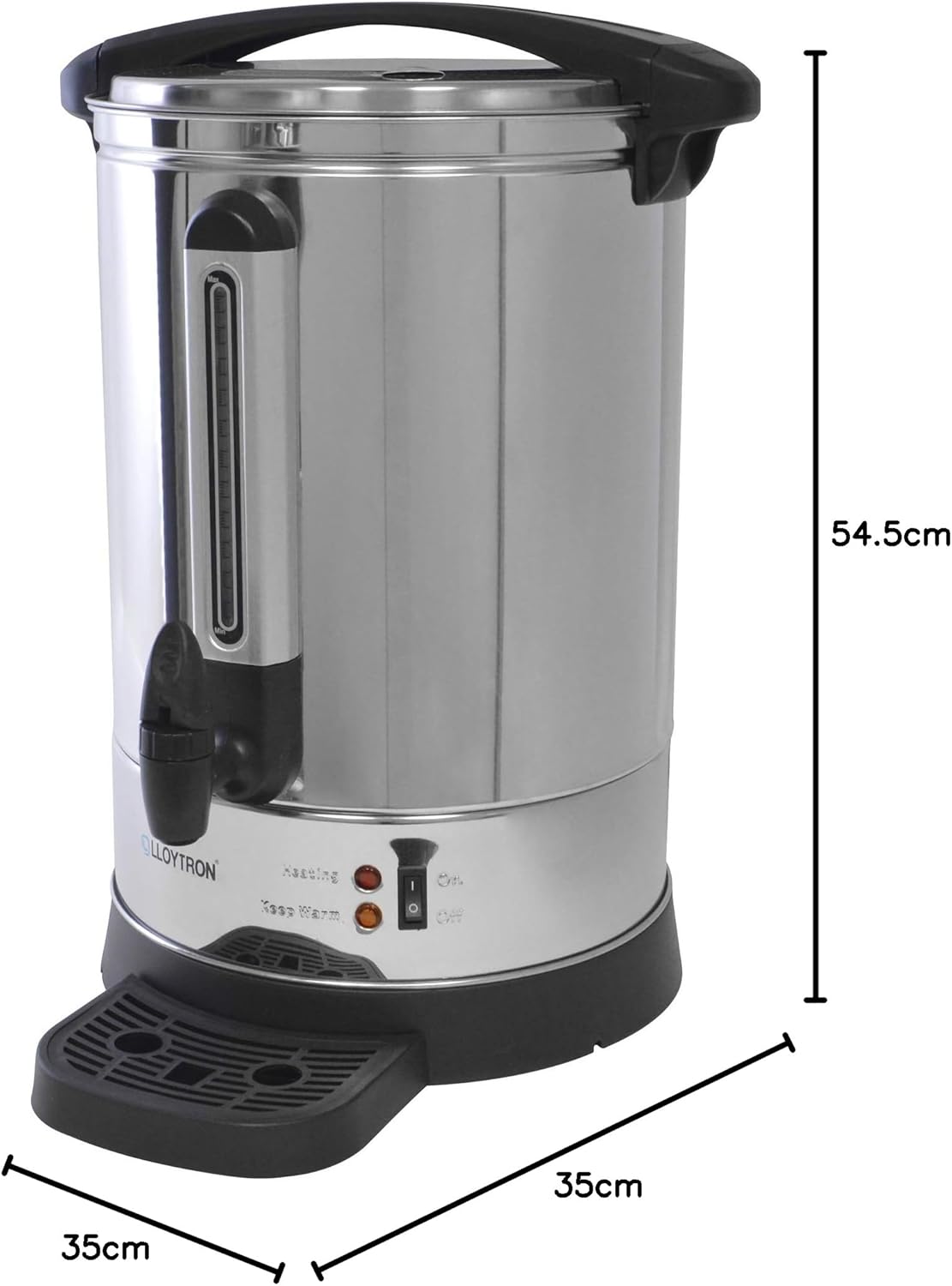 سعة 20 لتر (تقريبًا. 80 كوب): سعة كبيرة 20 لتر تصنع حوالي 80 كوب، مما يوفر للعملاء والضيوف والموظفين المشروبات الساخنة بسرعة ودون عناء عندما يحتاجون إليها دون فوضى. وعاء تقديم الطعام مصنوع من الستانلس ستيل عالي الجودة بتصميم أنيق وبسيط ويمثل إضافة ممتازة لأي مطبخ منزلي أو تجاري. يتضمن التصميم مقياسًا عمليًا لمستوى المياه، ومقبض حمل، وصنبور مضاد للتنقيط، وعنصر مخفي، وصينية تنقيط وغطاء ملتف للقفل.