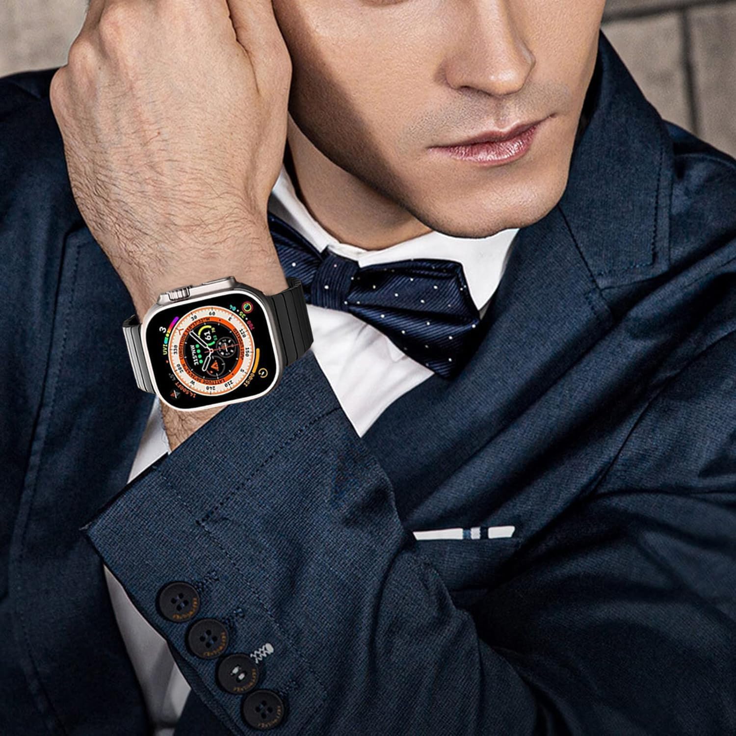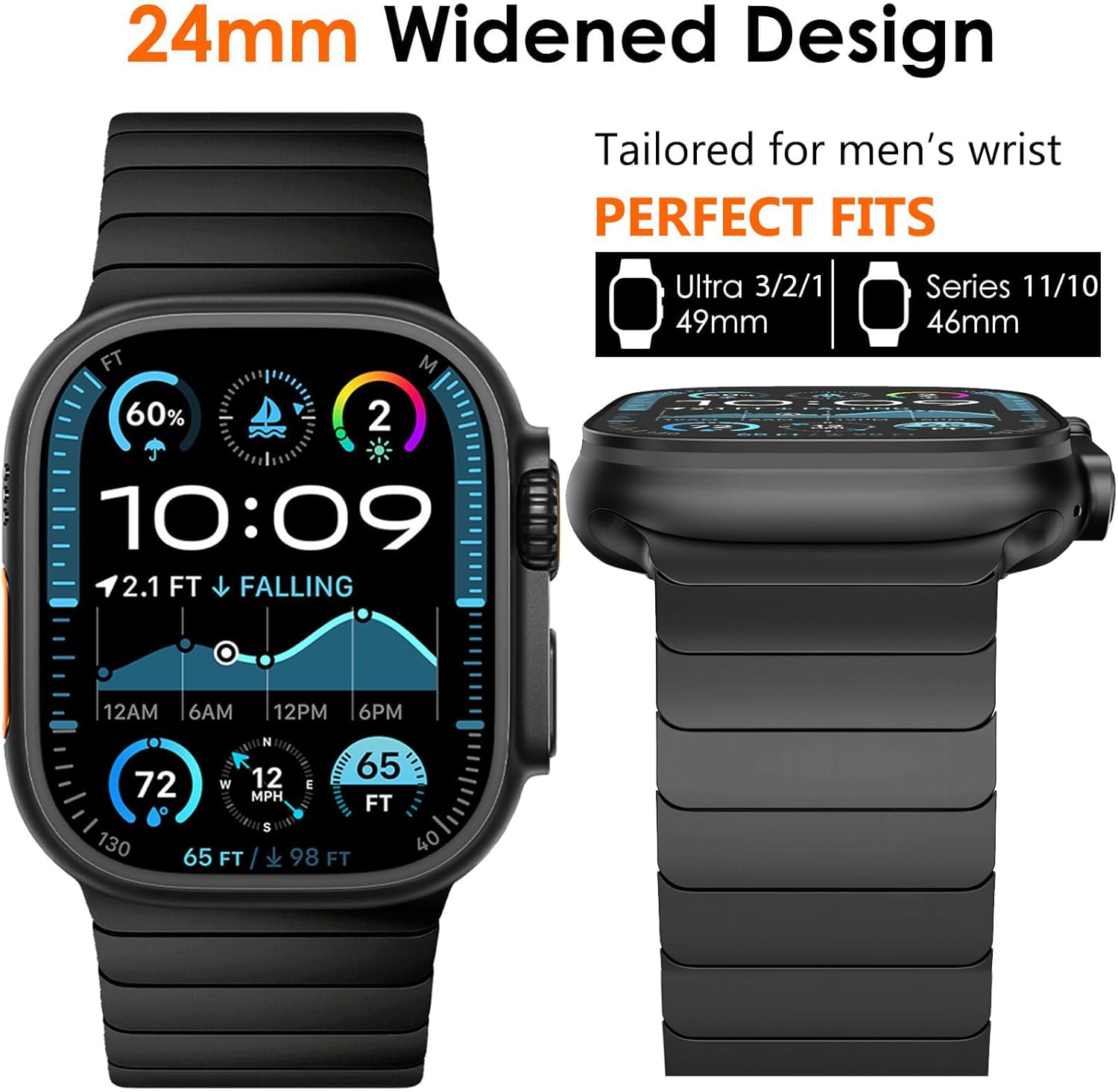 وينجلي سوار ساعة ابل الترا 3/2/1 الترا 49 ملم سلسلة 11 10 46 ملم 45 ملم 44 ملم 42 ملم اس اي 3/2/1 سلسلة 9 8 7 6 5 4 للرجال، سوار معدني بعرض 24 ملم من الستانلس ستيل لساعة ابل اي ووتش لينك، اسود