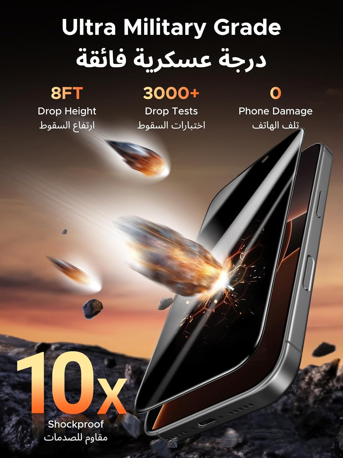 【صلابة فائقة 9H – مقاوم للصدمات العسكرية】مصمم لظروف قاسية: يتحمل العواصف الرملية اليومية والسقوط العرضي لآيفون 17 برو ماكس. مقاوم للصدمات بدرجة عسكرية + مقاوم للخدش بقوة الماس. مصمم خصيصاً لأسلوب الحياة النشط في الإمارات العربية المتحدة