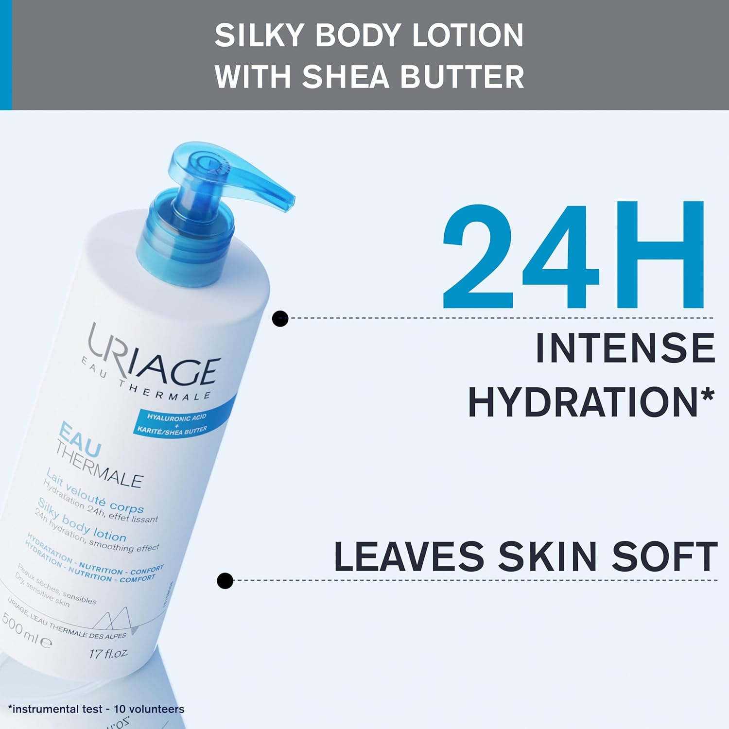 يندمج هذا اللوشن الحريري الناعم على الفور مع البشرة لترطيب مكثف وناعم ومريح. لمدة 24 ساعة تترك بشرتك ناعمة ونضرة مع توهج طبيعي. تستعيد بشرتك المستوى الأمثل من الترطيب والراحة الدائمة. استخدمه يوميًا بعد التنظيف. لأنواع البشرة الجافة والحساسة.