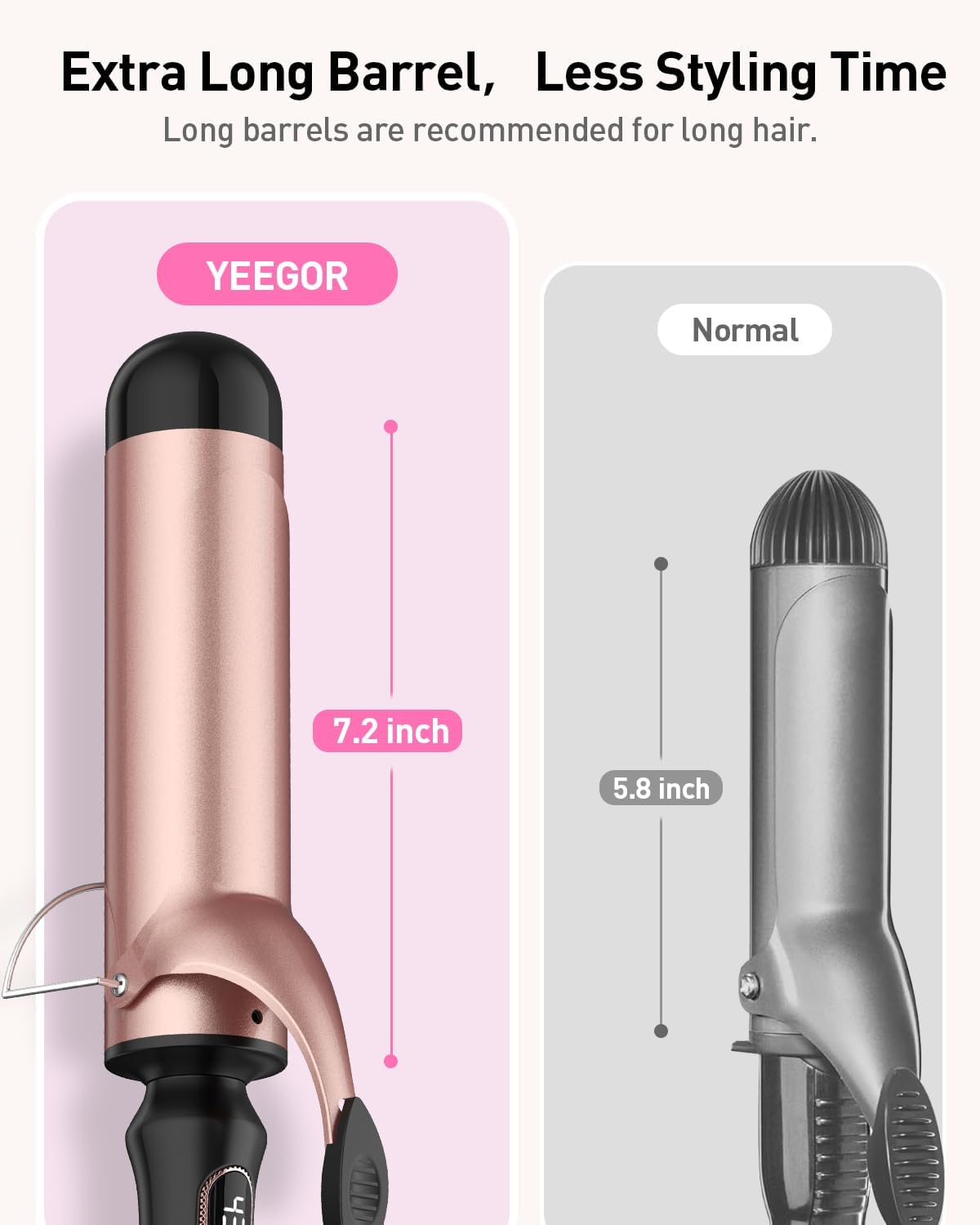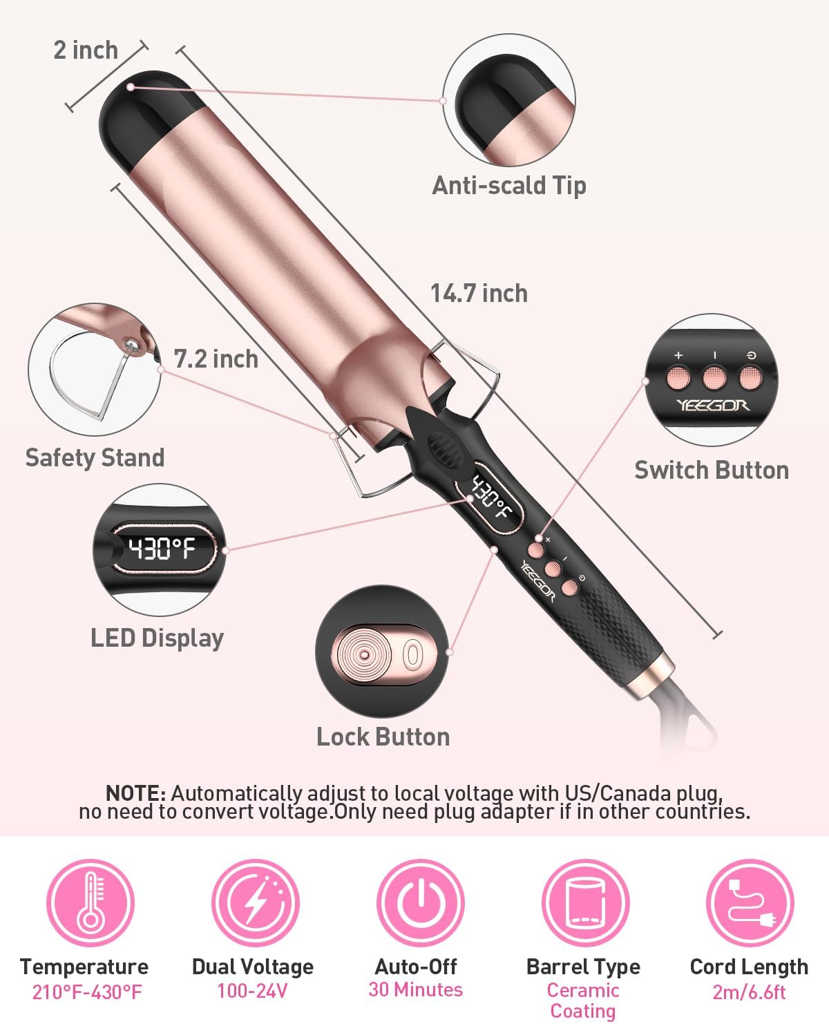 ييجور مكواة تجعيد كبيرة للغاية 2 انش، مكواة تجعيد باسطوانة طويلة، مكواة تجعيد مزدوجة الجهد 100-240 فولت لتجعيد الشعر المموج الكبير، 12 درجة حرارة