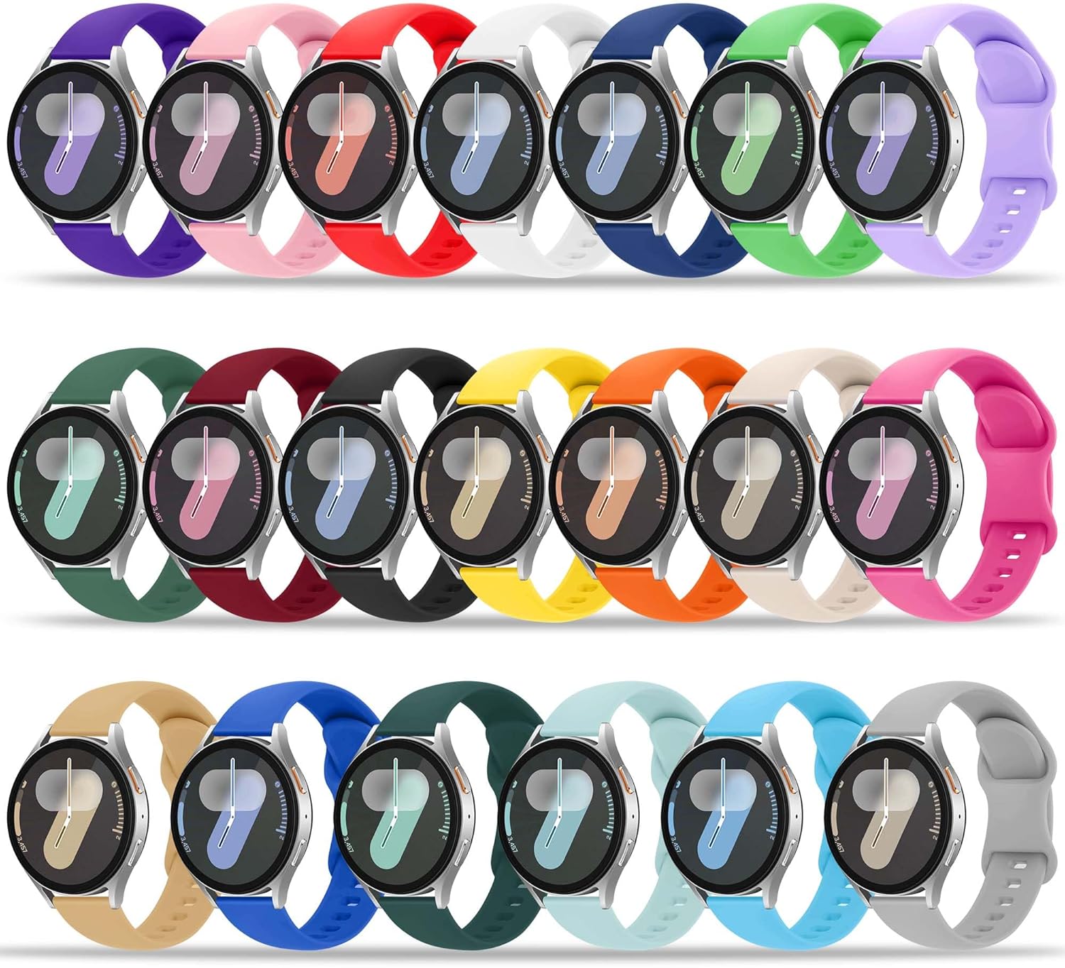 عبوة من 20 سوار من تيوريسيم متوافق مع ساعة سامسونج جالكسي 7 6 5 4 اف اي 40 ملم 44 ملم/ 6 4 كلاسيك 43 ملم 47 ملم 42 ملم 46 ملم/ 5 برو 45 ملم/ اكتيف 2، سوار رياضي بديل من السيليكون الناعم 20 ملم للنساء والرجال